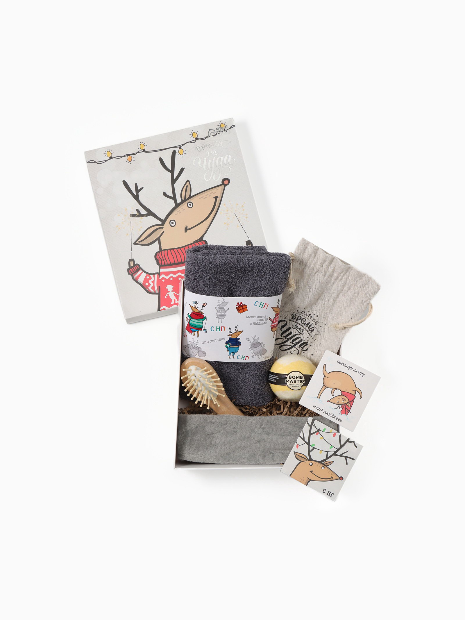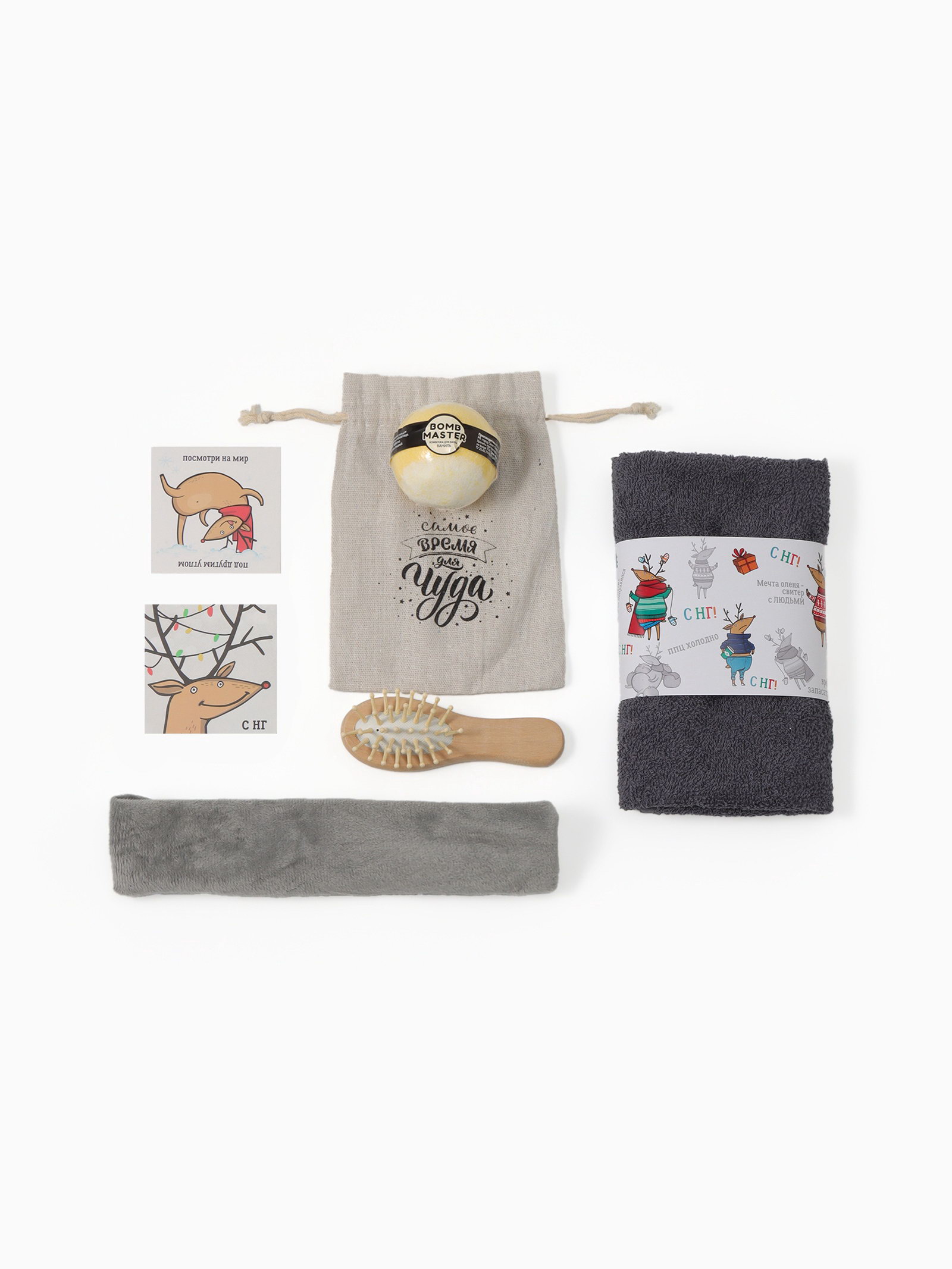 Новогодний подарочный набор "Этель. Время для чудес", 4 предмета, полотенце, расчёска, повязка, Этель, Россия