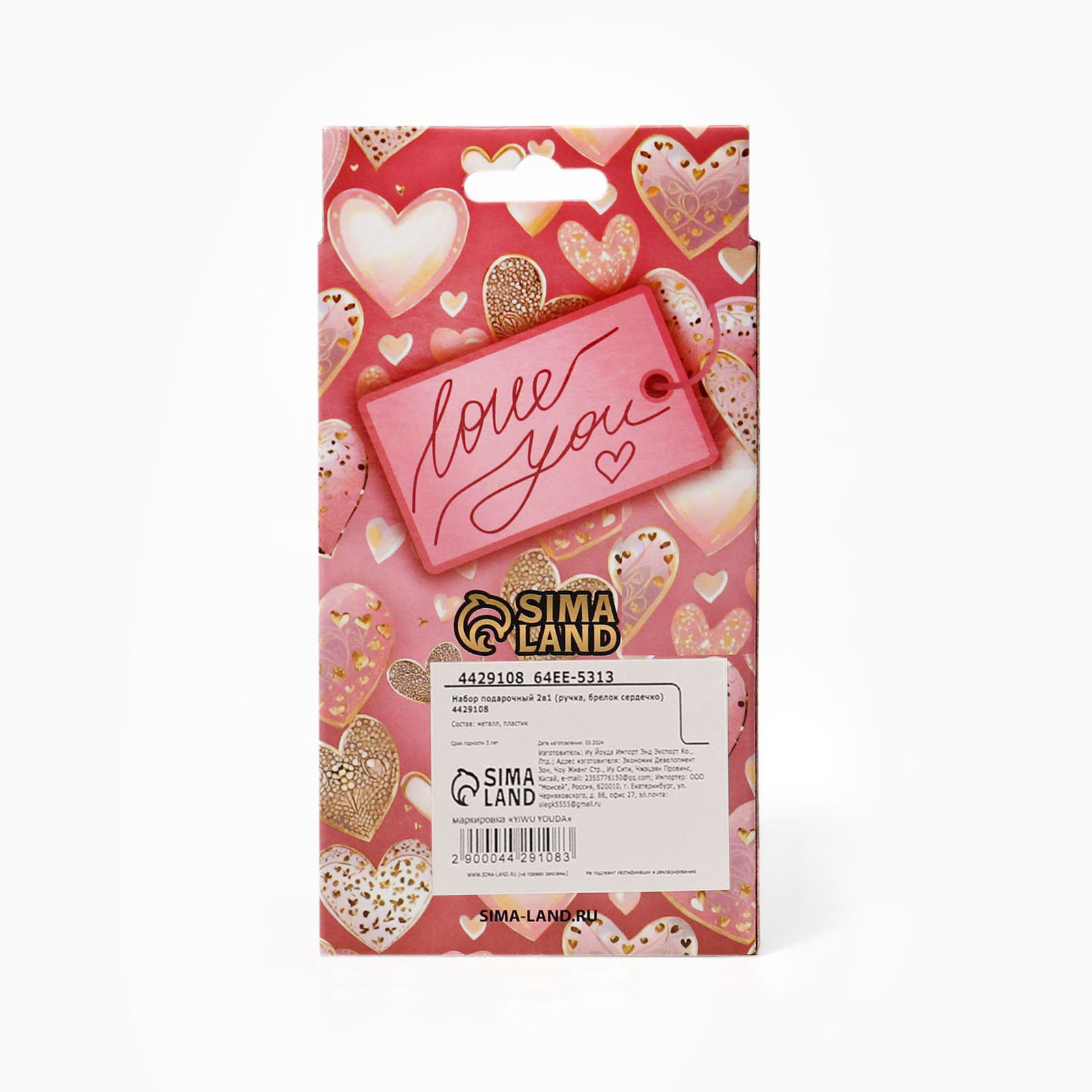 Набор подарочный 2 в 1, ручка, брелок-сердечко, 9x17x1.5 см., TAKE IT EASY, Китай