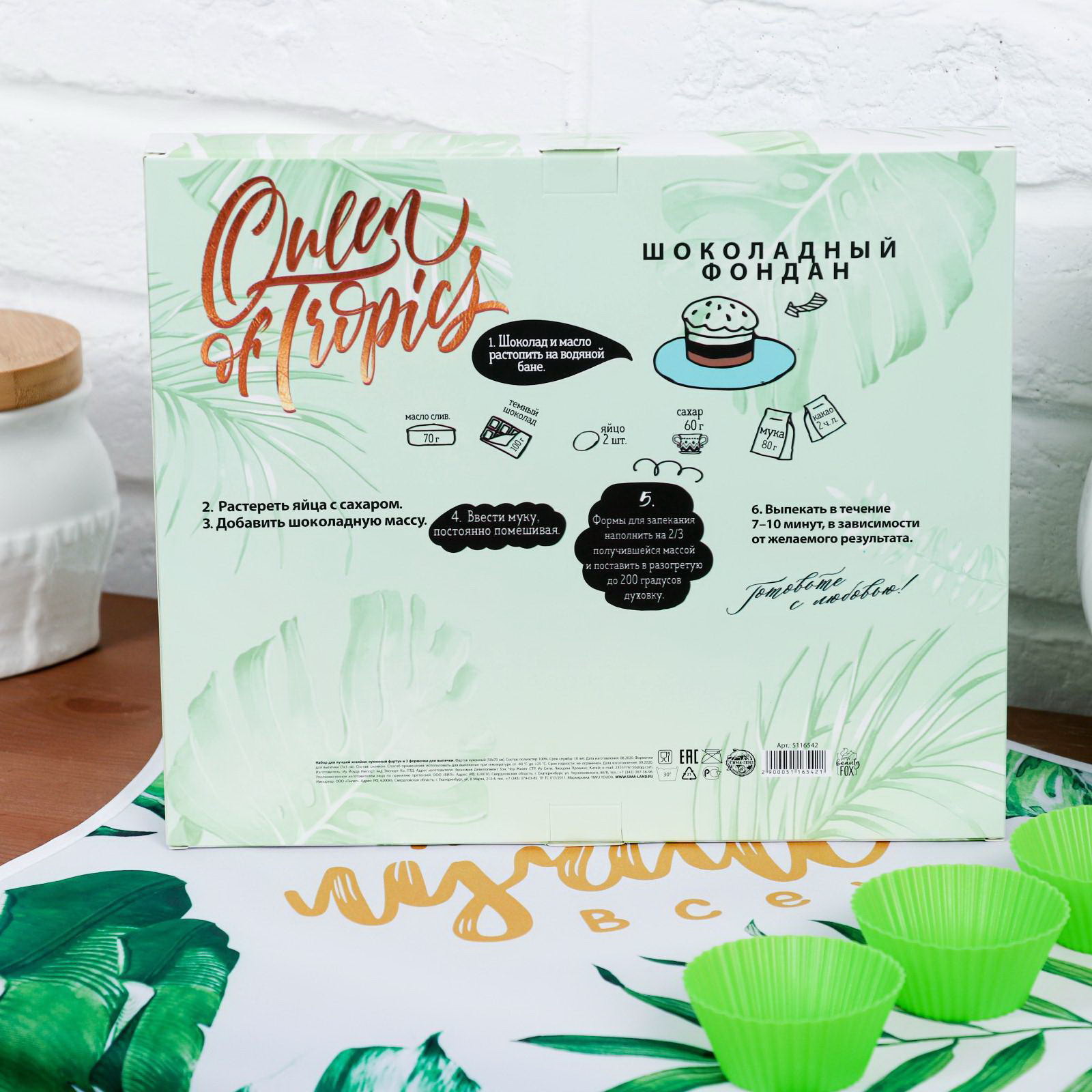 Подарочный набор Queen of tropics, кухонный фартук 50 см x 70 см, формы для выпечки, 24.3x28.7x3.2 см., NAZAMOK, Россия