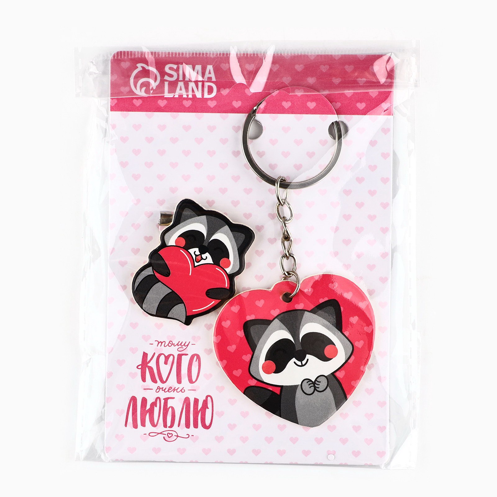 Брелок для ключей, значок, сувенир "Енот", набор, 8.3 x 12 см, 6.5x10.5x0.5 см., Сима-ленд, Китай
