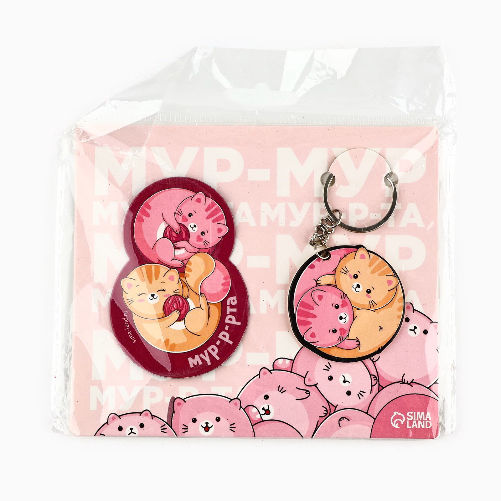 Магнит на холодильник и брелок "Мур-мур. 8 Марта", набор 2 предмета, 12x14.5x0.5 см., Сима-ленд, Китай