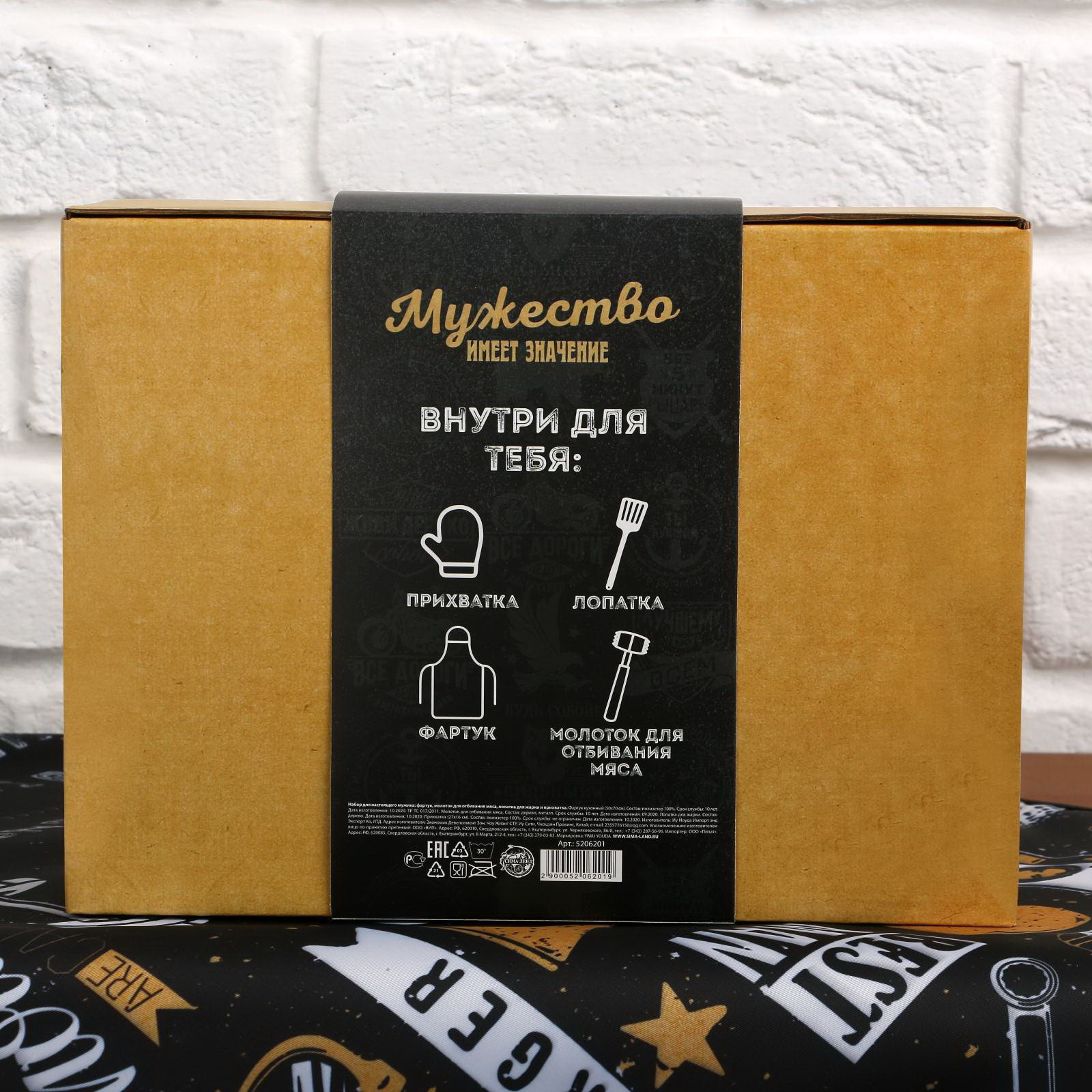 Подарочный набор кухонный "Лучшему во всем": фартук, лопатка для жарки, молоток для мяса, прихватка, 9.4x29.6x20.8 см., NAZAMOK, Россия