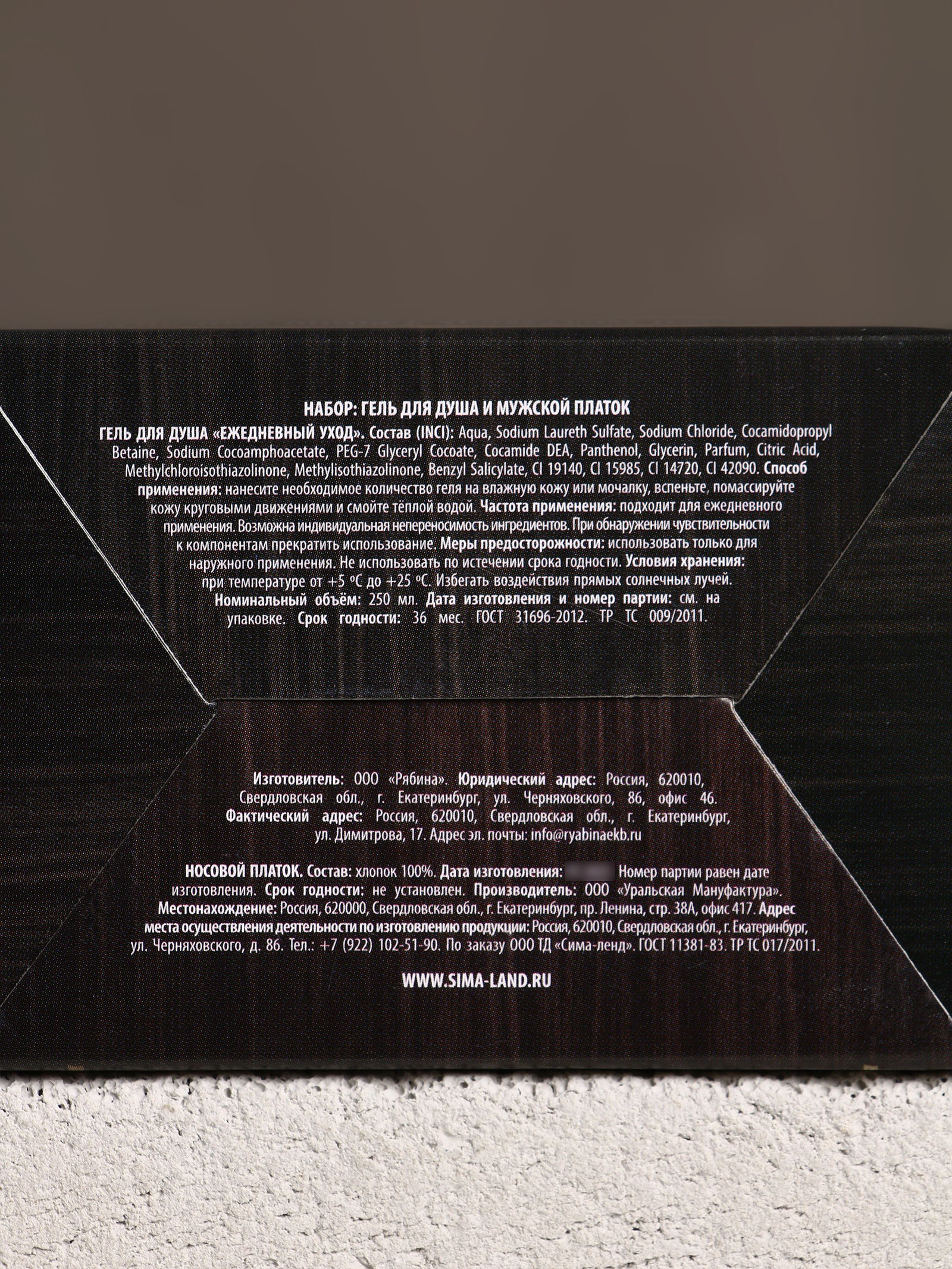 Возраст: Взрослый, Для взрослых Тематика праздника: 23 Февраля, Универсальная тематика Составляющие набора: Гель для душа, Шарф/платок Размер упаковки: 8.2 x 17 x 5.7 см. tnved: 3401300000 Вид упаковки: Подарочная коробка Тематика подарка: Уходовая косметика Аромат: Мужской парфюм Для кого: Для мужчины Адресат: Без адресата В наборе, шт.: 2 Область применения: Для тела Температурное ограничение: Нет Набор: Да Новогодняя коллекция: Алкоголь Символ года: Нет Темпер. ограничение НЕ НИЖЕ ℃: -25 | ||