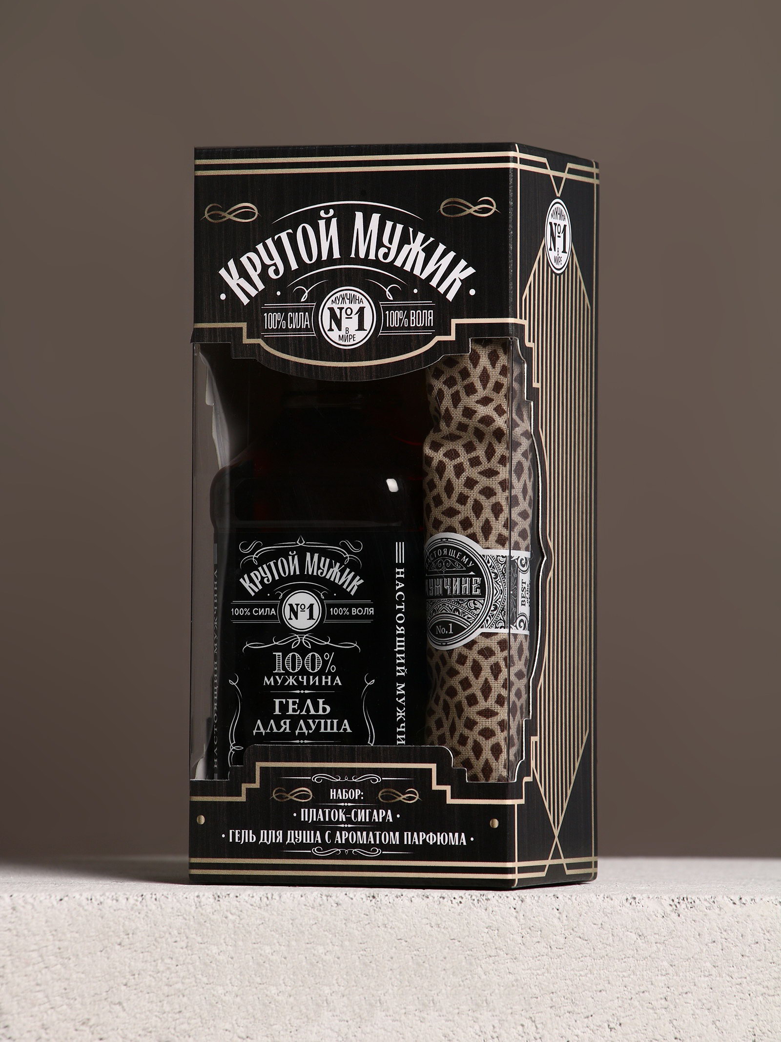 Подарочный набор новогодний "Крутому мужчине": гель для душа во флаконе виски 250 мл, аромат мужского парфюма, платок в форме сигары, 250 мл., Чистое счастье, Россия
