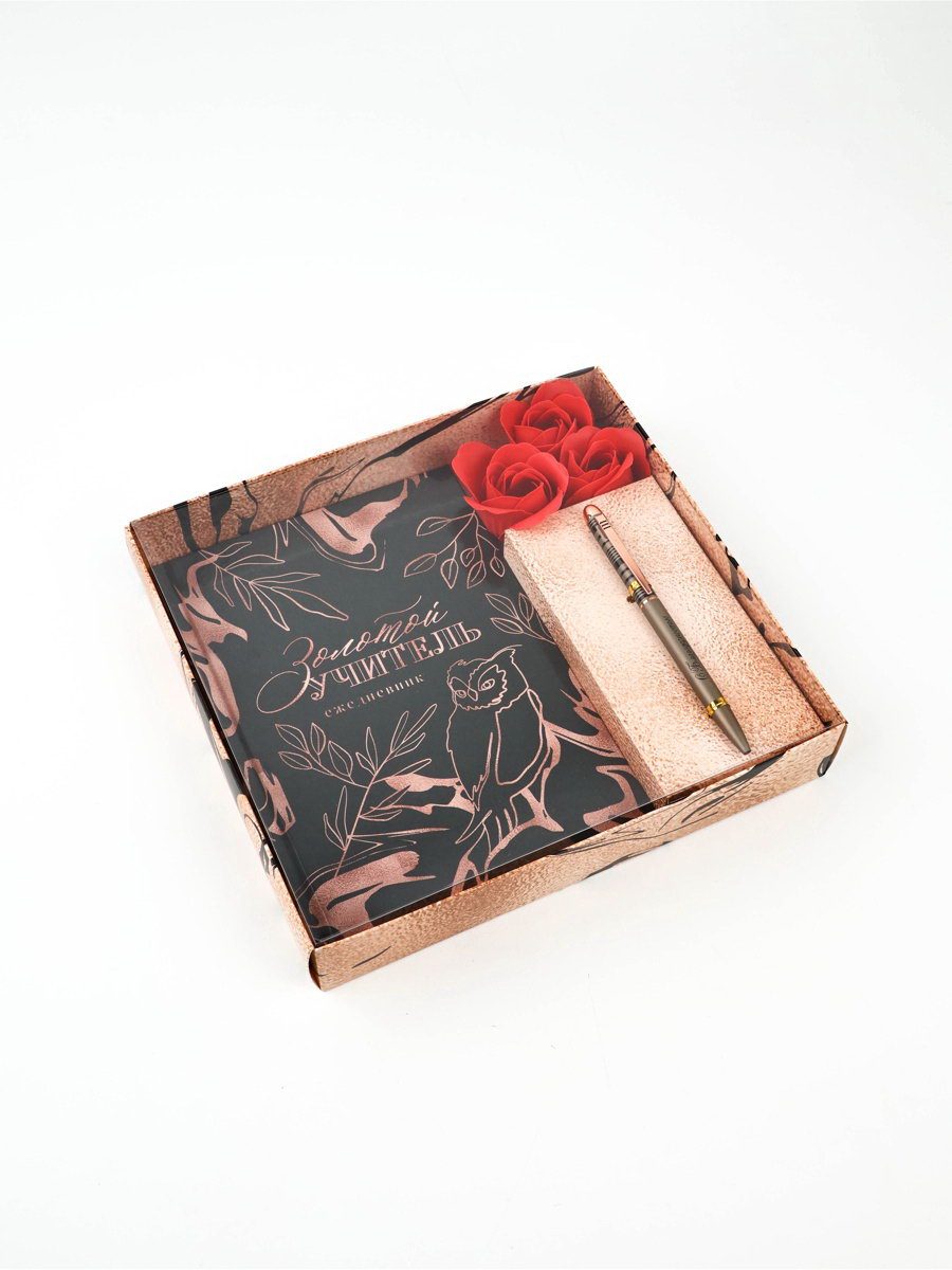 Подарочный набор, ежедневник А5, 80 л, ручка, мыльные лепестки "Золотой учитель", ArtFox, Россия