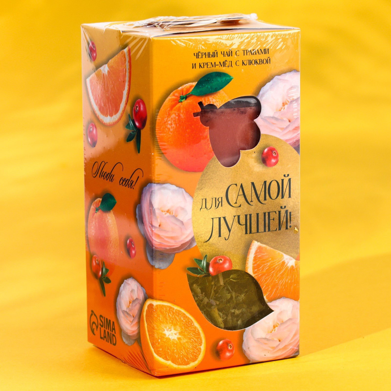 Подарочный набор "Для самой лучшей": черный чай с травами и фруктами 25 г, крем-мед с клюквой 120 гр, Фабрика счастья, Россия