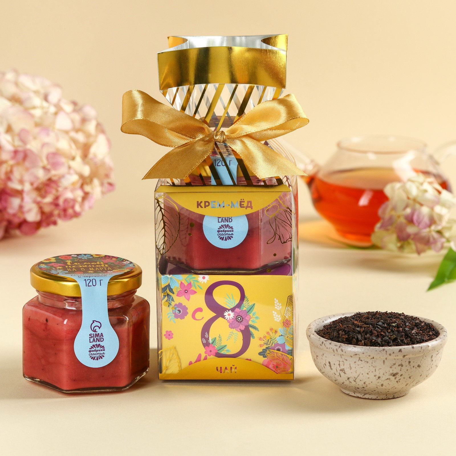 Подарочный набор "С 8 Марта": крем-мёд, чай 50 г, Фабрика счастья, Россия