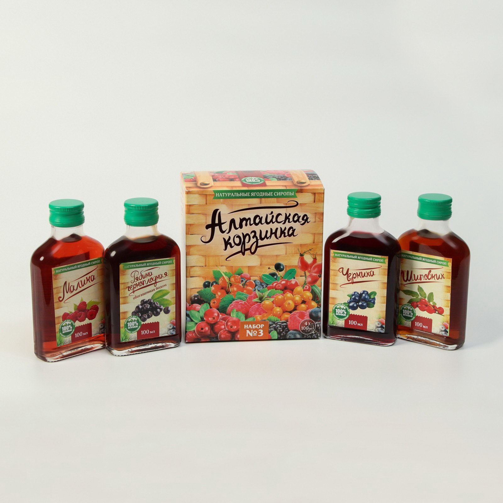 Подарочный набор сиропов Алтайская корзинка №3, 4 шт. по 100 мл, Целебный дар Алтая, Россия