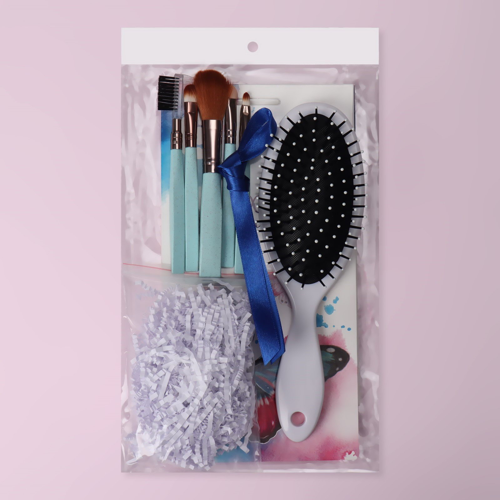 Набор "Яркая бабочка", 2 предмета: набор кистей, массажная расчёска, разноцветный, Queen fair, Китай