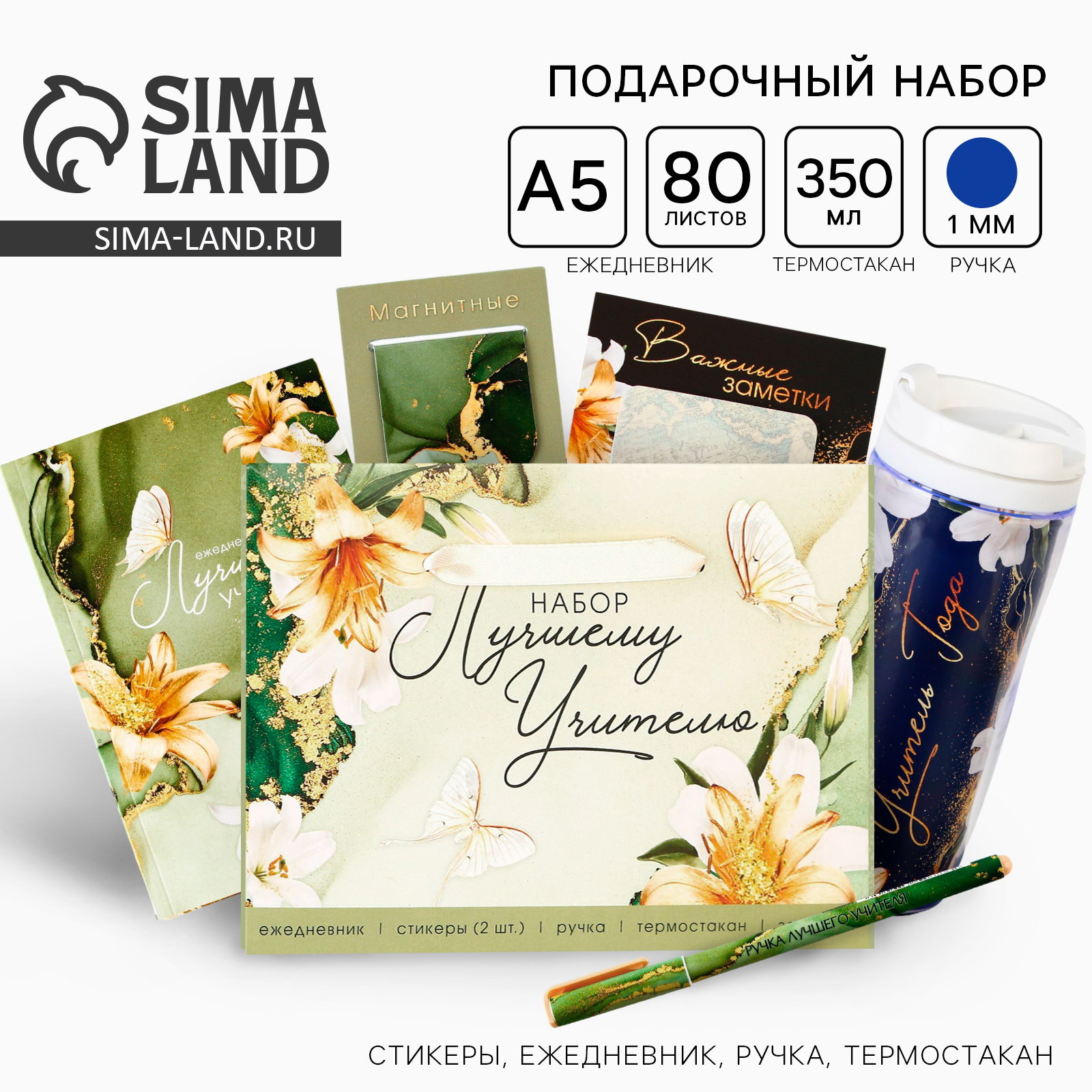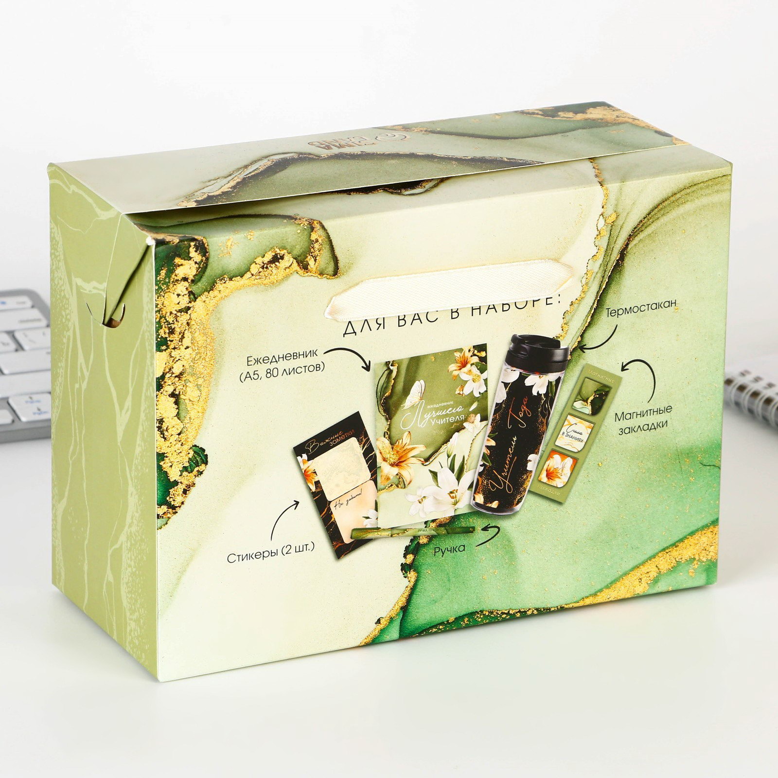 Подарочный набор "Лучшему учителю": ежедневник А5, 80 листов, ручка, стикеры, термостакан 350 мл и магнитные закладки, ArtFox, Россия