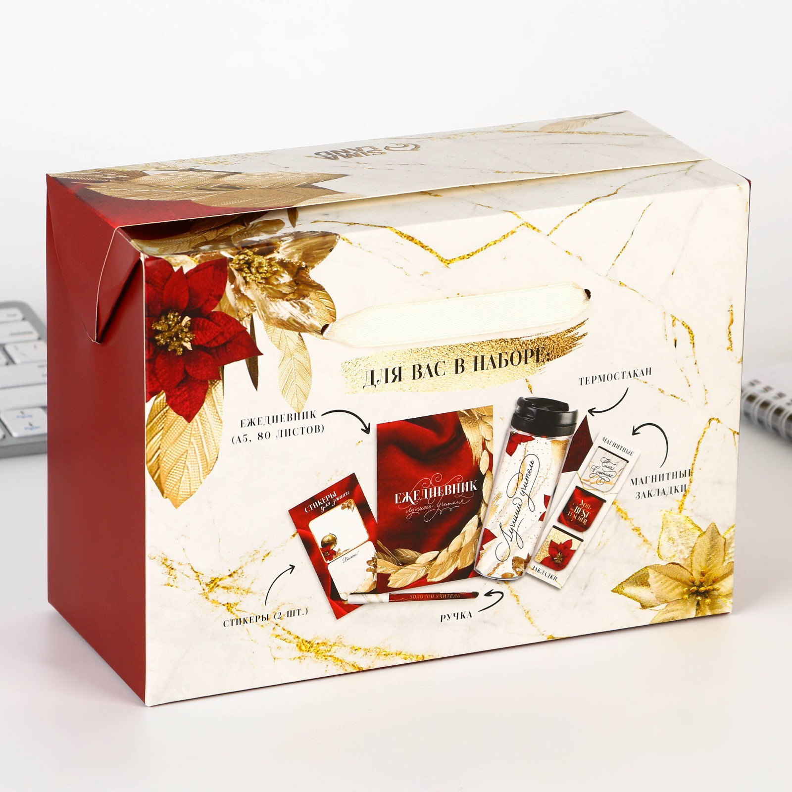 Подарочный набор "Учителю: УЧИТЕЛЬ №1": ежедневник А5, 80 листов, ручка, стикеры, термостакан 350 мл и магнитные закладки, ArtFox, Россия