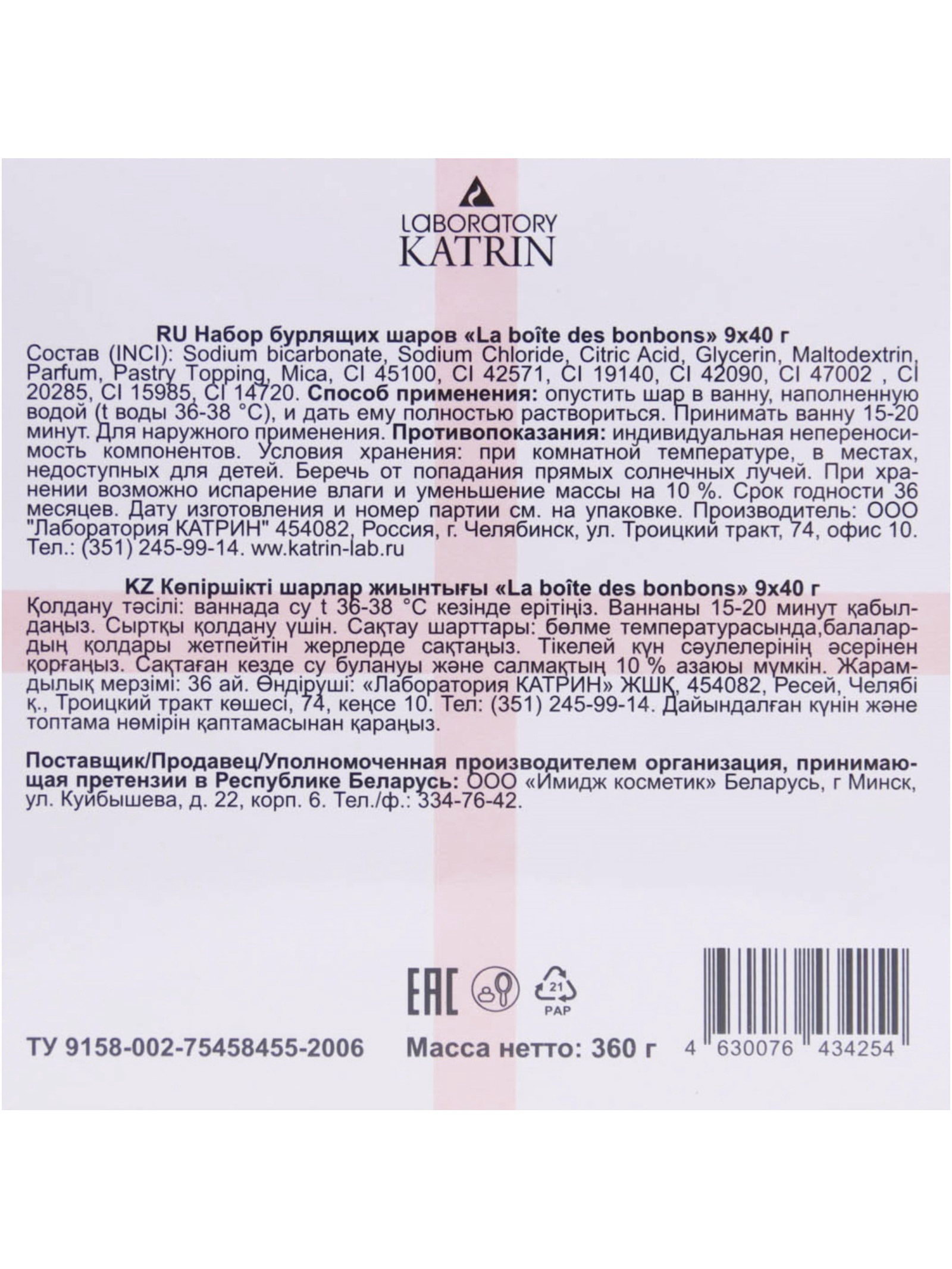 Набор бомбочек Candy bath bar La boite des bonbons, 9x40 г, Laboratory Katrin, Россия
