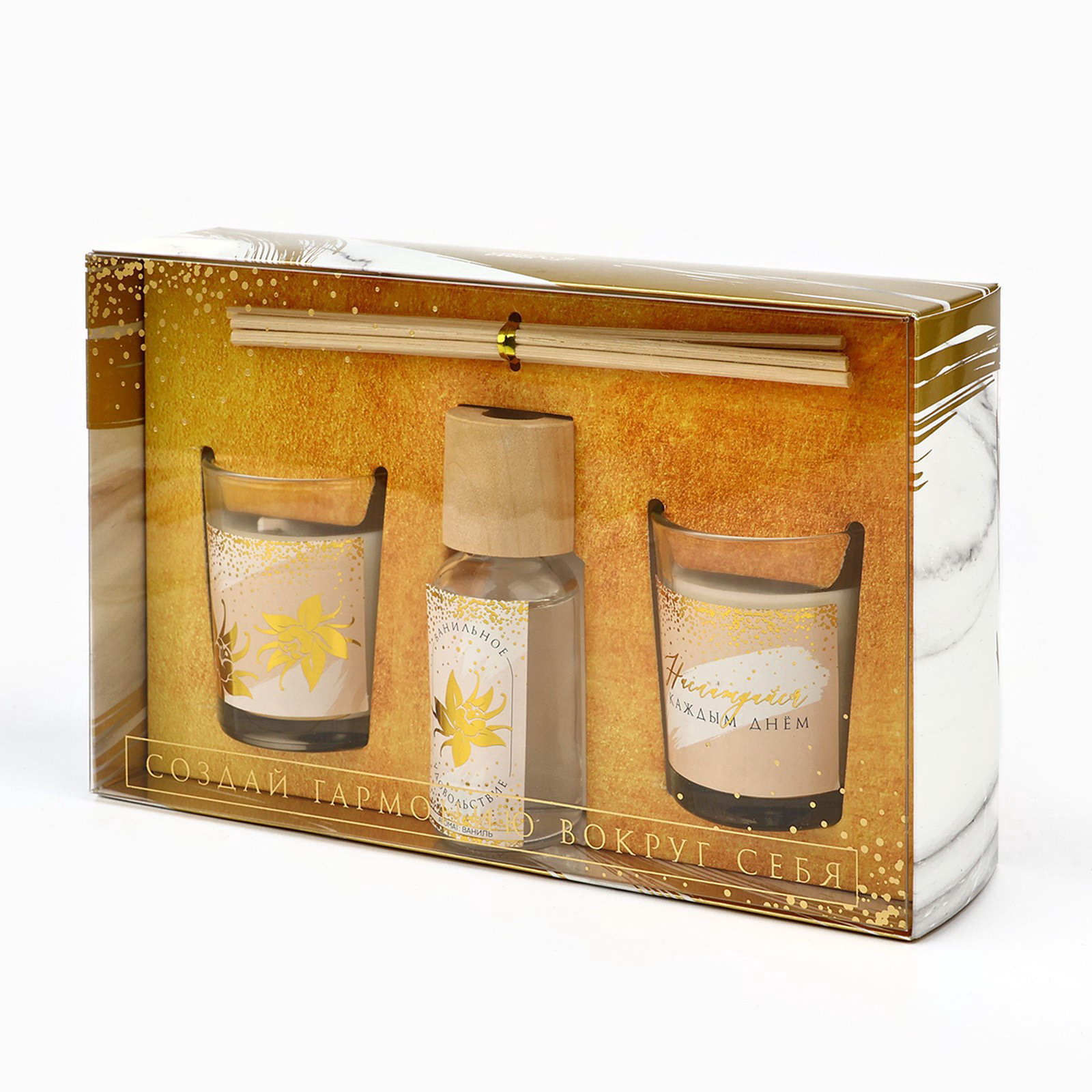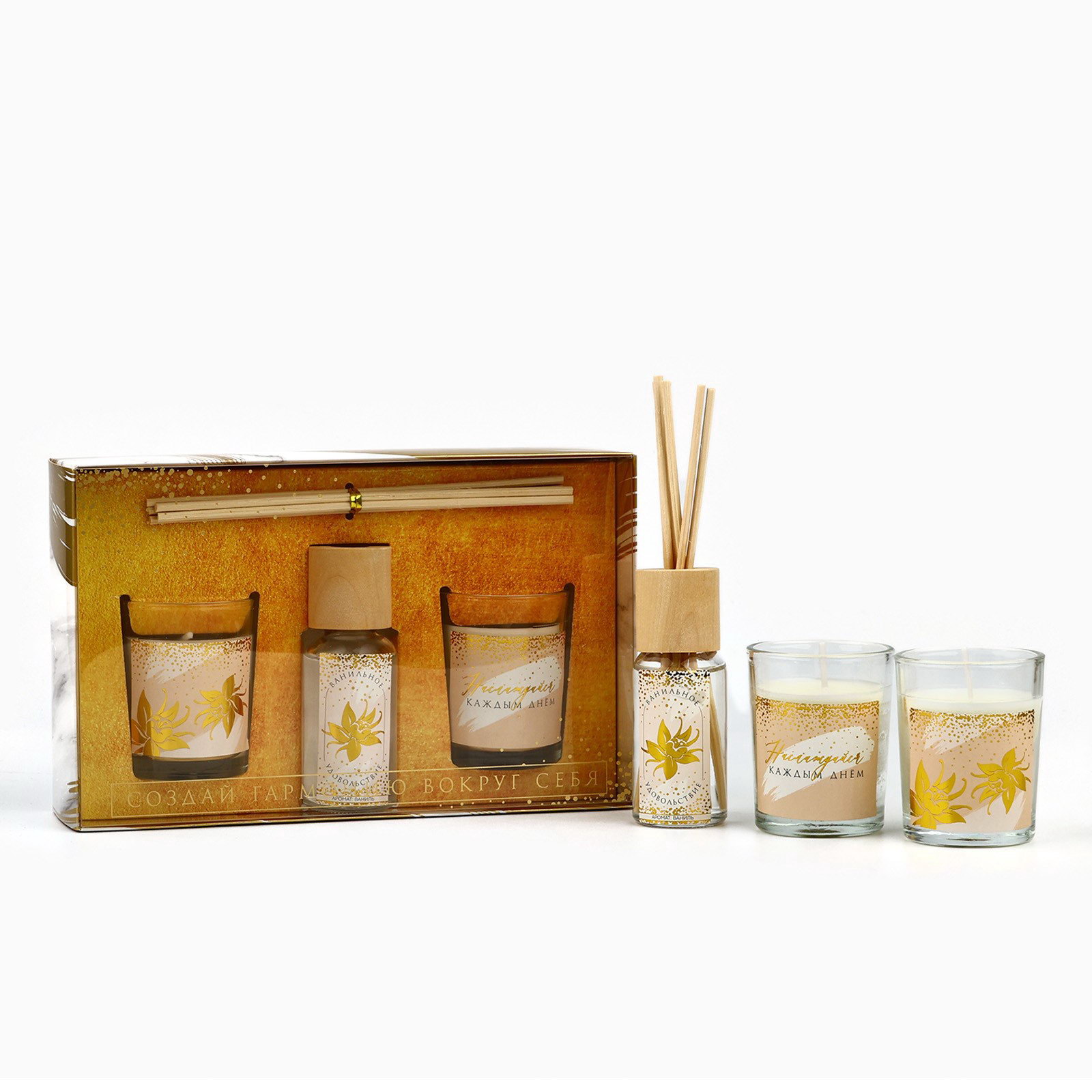 Подарочный набор: Диффузор ароматический и свечи интерьерные "Наслаждайся каждым днем", аромат ваниль, 20 x 12.5 x 5 см, 5x20x12.5 см., SEE YOU HOME, Китай