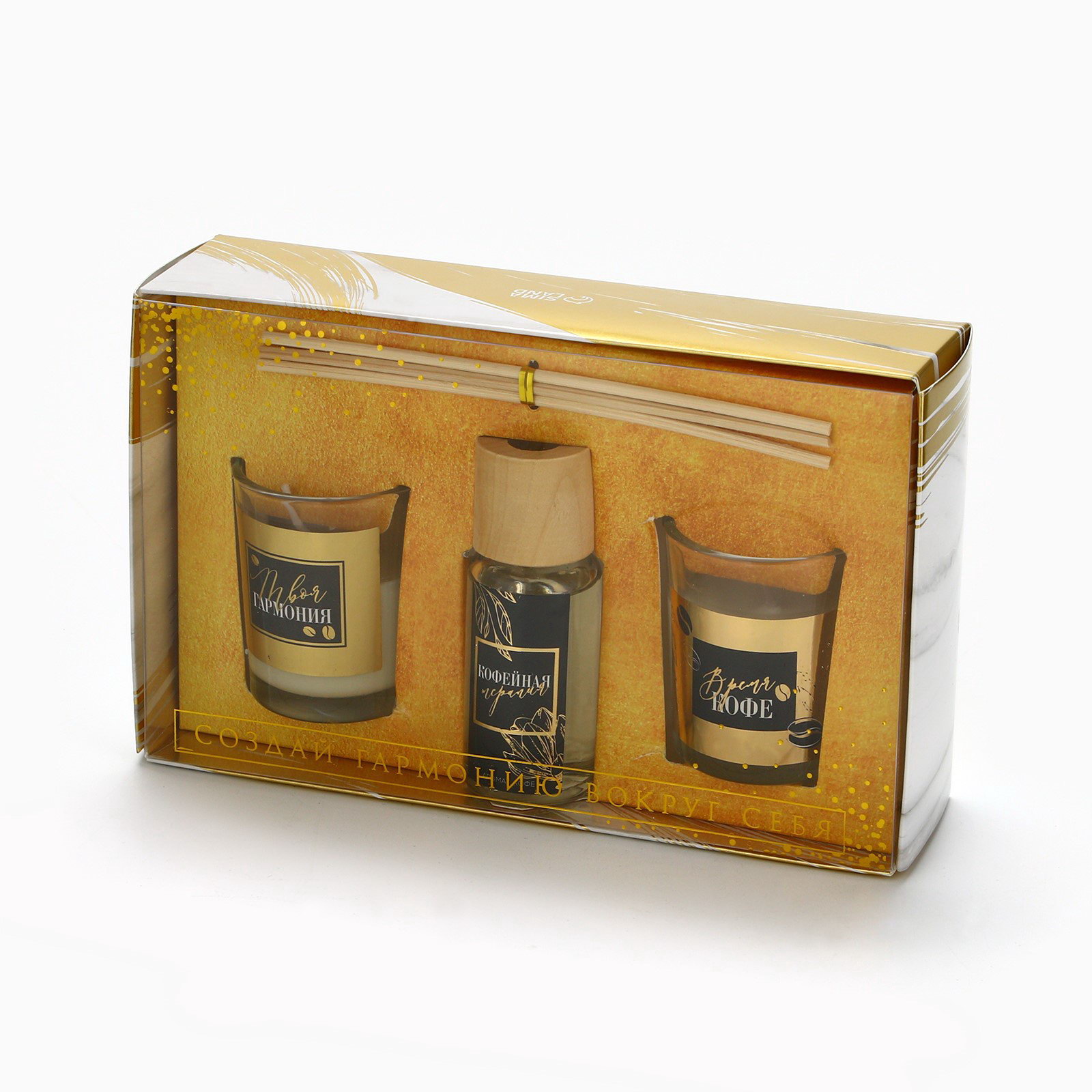Подарочный набор: Диффузор ароматический палочки, ароматизатор для дома и свечи интерьерные "Аромадиффузор: Время кофе", аромат кофе, 20 x 12.5 x 5 см, 5x20x12.5 см., SEE YOU HOME, Китай