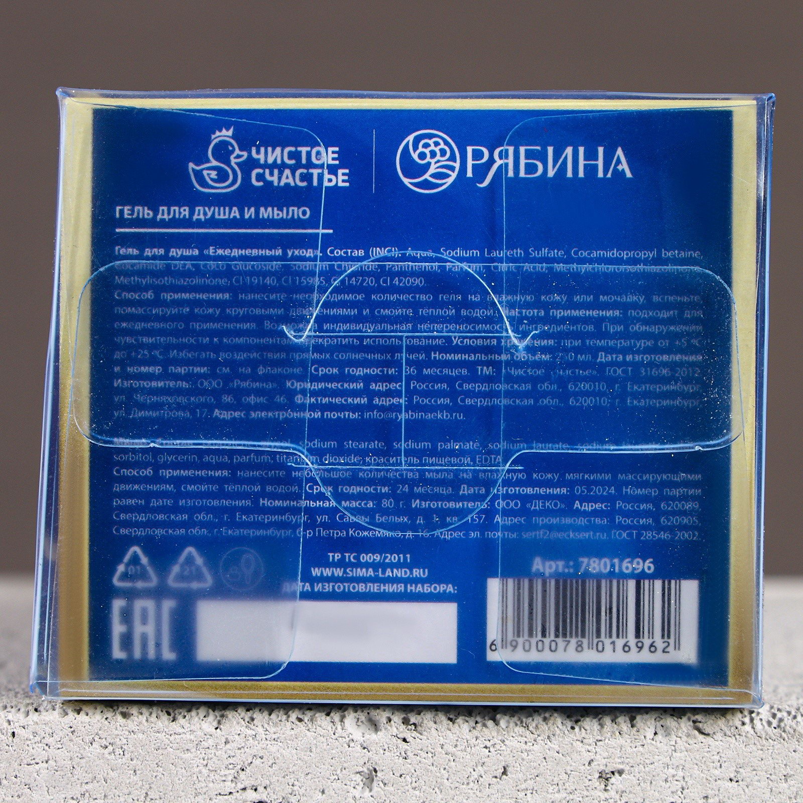 Вид: Гель, Мыло Область применения: Для рук, Для рук, Для тела, Для тела Форма выпуска: Флакон без дозатора, Формовые Аромат: Древесный с пряными нотами, Шоколад Возраст: Взрослый, Для взрослых Составляющие набора: Гель для душа, Мыло Размер упаковки: 8.5 x 17 x 7 см. Темпер. ограничение НЕ ВЫШЕ ℃: +25 Темпер. ограничение НЕ НИЖЕ ℃: +5 Назначение: Очищение, детокс Тематика подарка: Уходовая косметика Набор: Да Тип: Твёрдое Запрет реализации по сегментам: 00000000534 В упаковке, шт.: 2 Вид мыла: Сувенирное Символ года: Нет Адресат: Без адресата Тематика праздника: Универсальная тематика Цвет: Синий Вид упаковки: Подарочная коробка Вес, г/Объём, мл: 80 tnved: 3401300000 В наборе, шт.: 2 Для кого: Для мужчины | ||