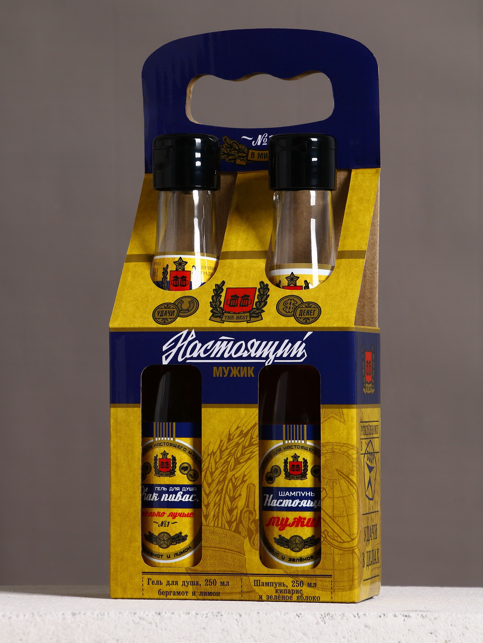 Подарочный набор "Как пивас, только лучше": гель для душа и шампунь для волос пиво, 2x250, 250 мл., Чистое счастье, Россия