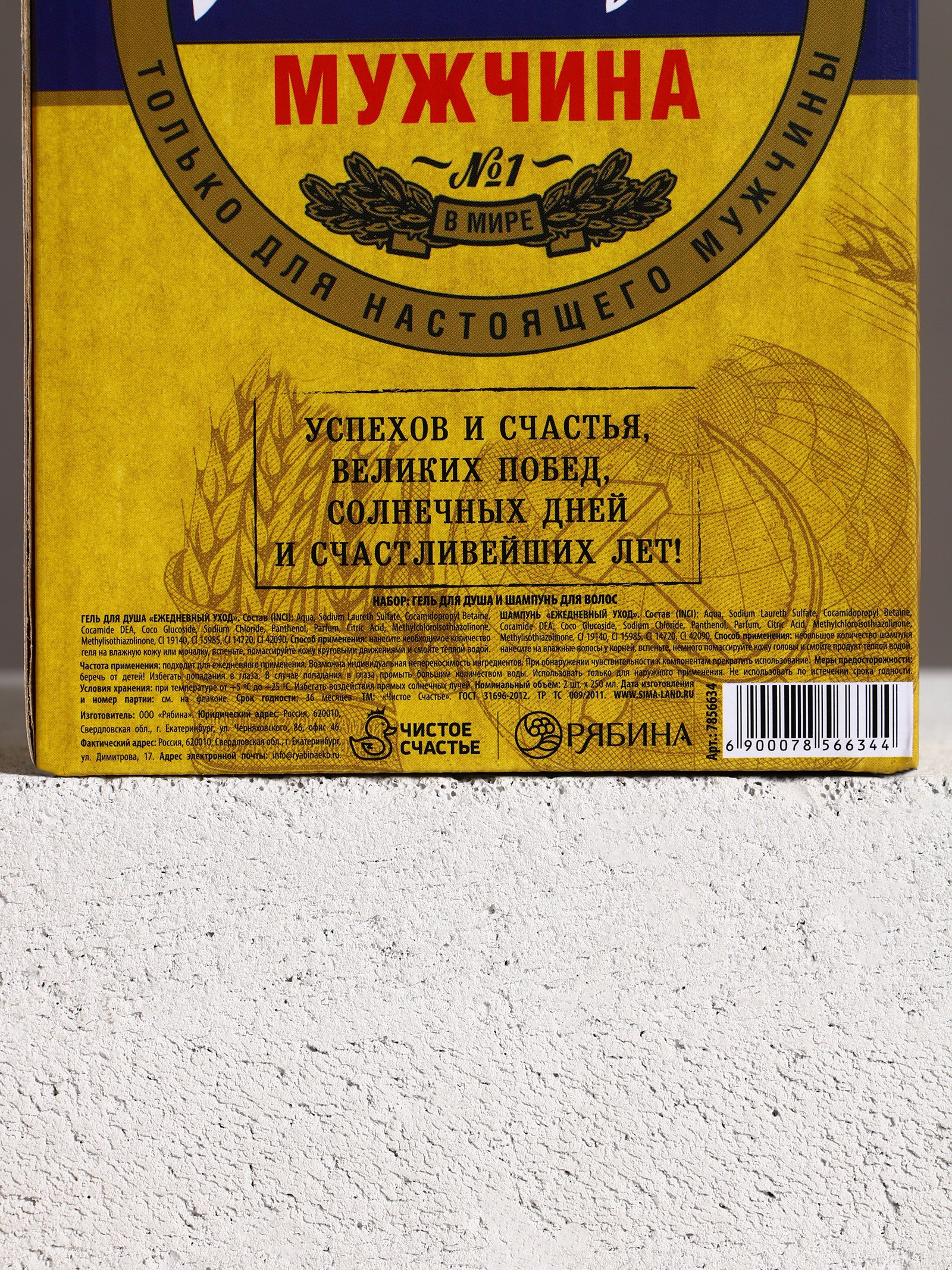 Вид: Гель, Шампунь Область применения: Для волос, Для головы, Для тела, Для тела Аромат: Бергамот, Кипарис, Лимон, Яблоко Форма выпуска: Флакон без дозатора, Формовые Возраст: Взрослый, Для взрослых Составляющие набора: Гель для душа, Шампунь Размер упаковки: 11 x 26.5 x 6 см. Темпер. ограничение НЕ НИЖЕ ℃: +5 Темпер. ограничение НЕ ВЫШЕ ℃: +25 Вид шампуня: Жидкий В упаковке, шт.: 2 Набор: Да Назначение: Очищение, детокс Эффект: Очищение Тип волос: Для всех типов Тематика праздника: Универсальная тематика Вид упаковки: Подарочная коробка Цвет: Жёлтый Адресат: Без адресата tnved: 3304990000 tnved: 3304990000 Для кого: Для мужчины В наборе, шт.: 2 Символ года: Нет Тематика подарка: Уходовая косметика Запрет реализации по сегментам: 00000000534 Шампунь. Состав: Аqua, Sodium Laureth Sulfate, Cocamidopropyl Betaine, Cocamide DEA, Sodium Chloride, Glycerin, Parfum, Citric Acid, Methylchloroisothiazolinone, Methylisothiazolinone, CI 42090, CI 19140, CI 14720. Гель для душа. Состав: Аqua, Sodium Laureth Sulfate, Cocamidopropyl Betaine, Cocamide DEA, Sodium Chloride, Glycerin, Parfum, Citric Acid, Methylchloroisothiazolinone, Methylisothiazolinone, CI 42090, CI 19140, CI 14720. | ||