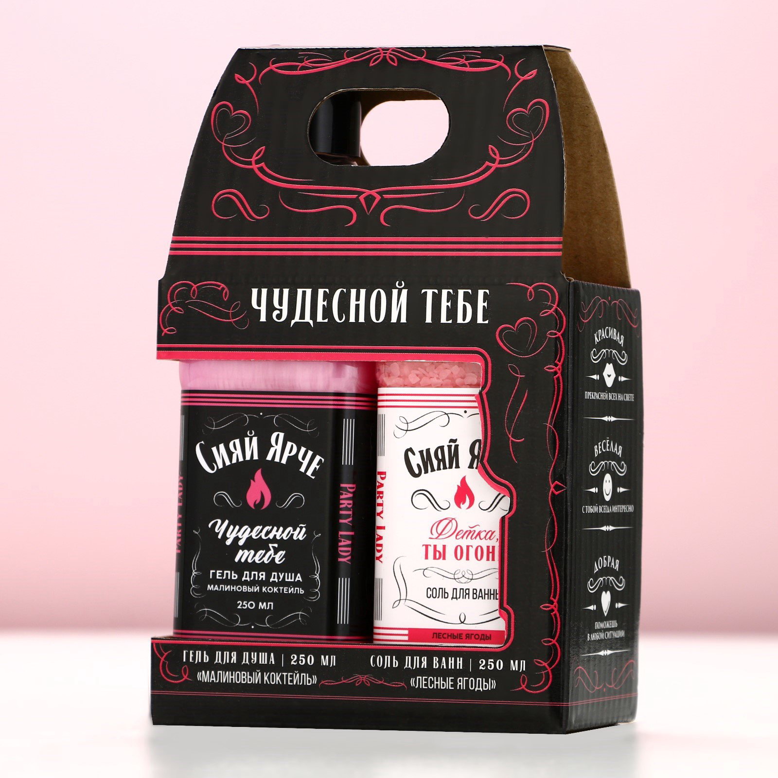 Подарочный набор косметики PARTY LADY: гель для душа виски 250 мл и соль для ванны 300 г, 250 мл., Чистое счастье, Россия