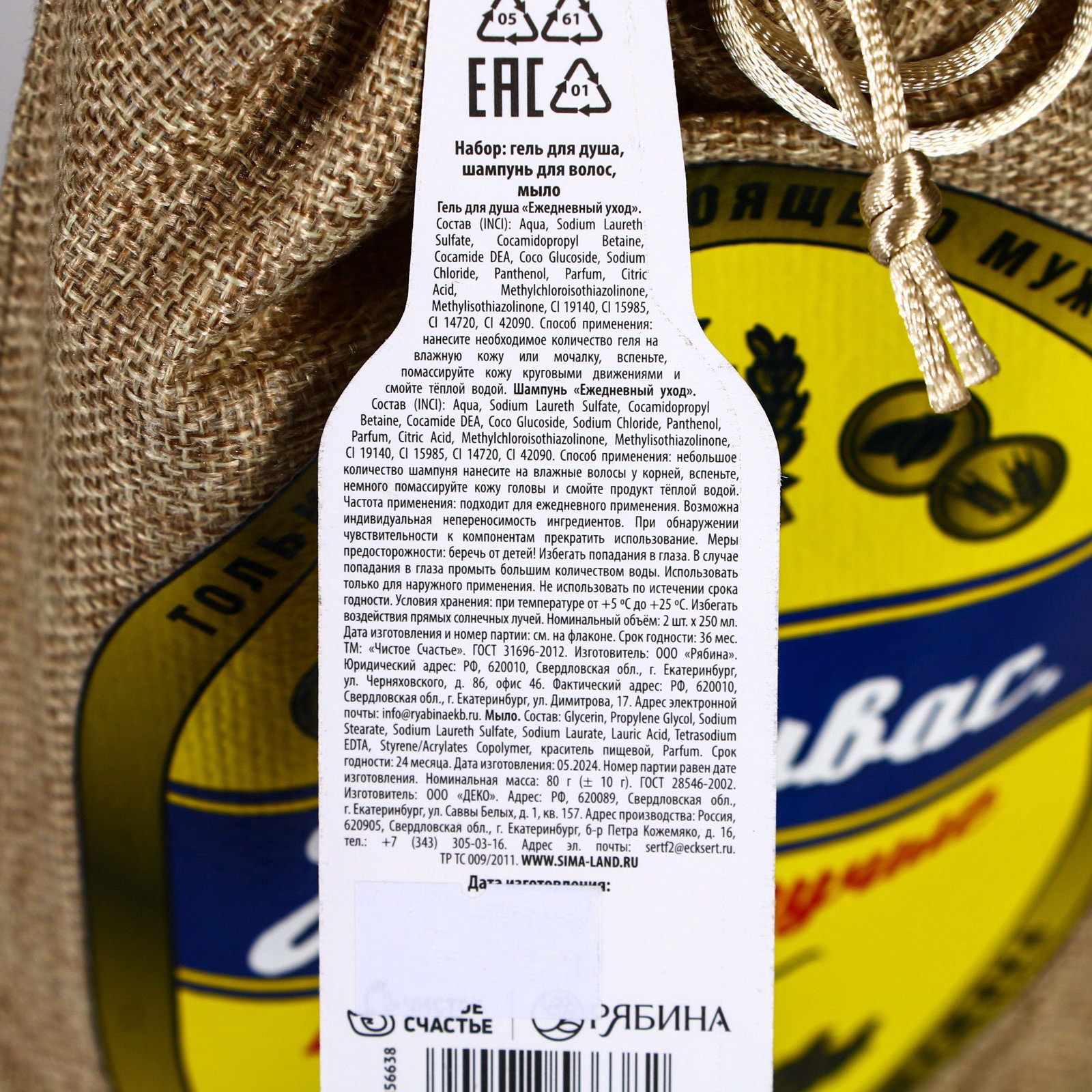 Аромат: Бергамот, Кипарис, Лимон, Яблоко Вес, г/Объём, мл: 70, 250 Область применения: Для волос, Для головы, Для рук, Для рук, Для тела, Для тела Вид: Гель, Мыло, Шампунь Возраст: Взрослый, Для взрослых Составляющие набора: Гель для душа, Мыло, Шампунь Размер упаковки: 17 x 25 x 6 см. Тематика праздника: Универсальная тематика Вес, г: 70 Набор: Да Цвет: Коричневый Тип: Твёрдое Вид мыла: Сувенирное Темпер. ограничение НЕ ВЫШЕ ℃: +25 Эффект: Очищение Темпер. ограничение НЕ НИЖЕ ℃: +5 Тип волос: Для всех типов Форма выпуска: Формовые Вид шампуня: Жидкий Назначение: Очищение, детокс Тематика подарка: Уходовая косметика Тематика подарка: Уходовая косметика tnved: 3304990000 Адресат: Без адресата В наборе, шт.: 3 Для кого: Для мужчины Новогодняя коллекция: Алкоголь Символ года: Нет Вид упаковки: Тканевый мешок Шампунь. Состав: Аqua, Sodium Laureth Sulfate, Cocamidopropyl Betaine, Cocamide DEA, Sodium Chloride, Glycerin, Parfum, Citric Acid, Methylchloroisothiazolinone, Methylisothiazolinone, CI 42090, CI 19140, CI 14720. Гель для душа. Состав: Аqua, Sodium Laureth Sulfate, Cocamidopropyl Betaine, Cocamide DEA, Sodium Chloride, Glycerin, Parfum, Citric Acid, Methylchloroisothiazolinone, Methylisothiazolinone, CI 42090, CI 19140, CI 14720. Мыло Состав: мыльная основа, глицерин, краситель, отдушка. | ||