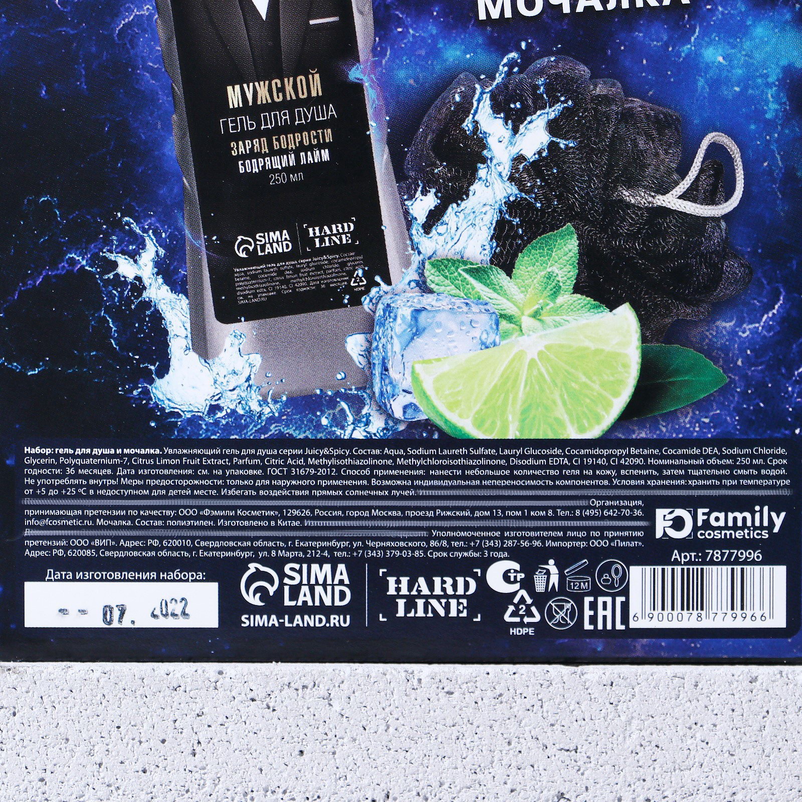 Подарочный набор "Настоящему герою", гель для душа 250 мл, аромат бодрящий лайм, мочалка, HARD LINE, Россия