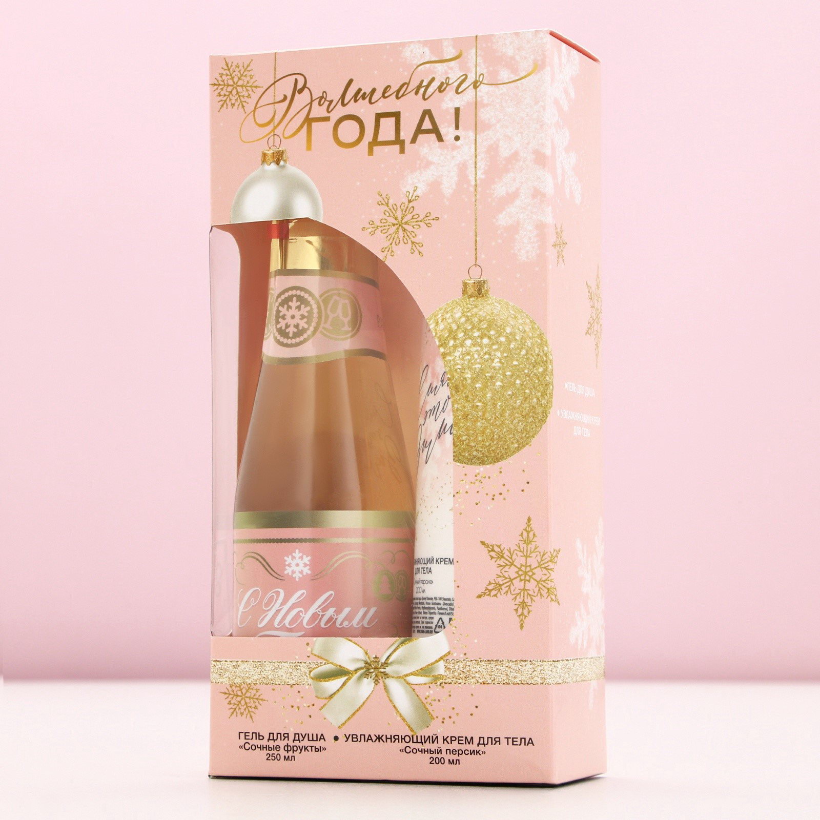 Новогодний подарочный набор косметики "Волшебного года": гель для душа шампанское 250 мл и крем для тела 200 мл, Чистое счастье, Россия