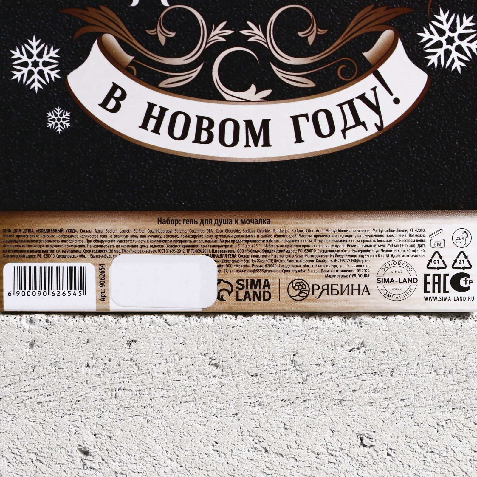 Новогодний подарочный набор косметики "Лучшему мужику", гель для душа 250 мл и мочалка для тела, 250 мл., Чистое счастье, Россия