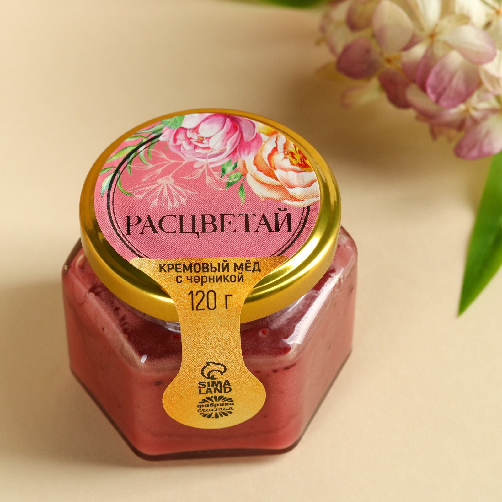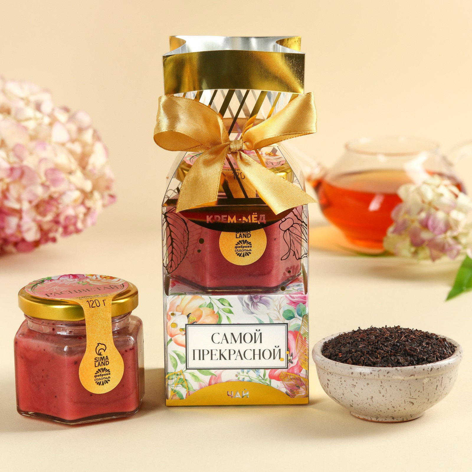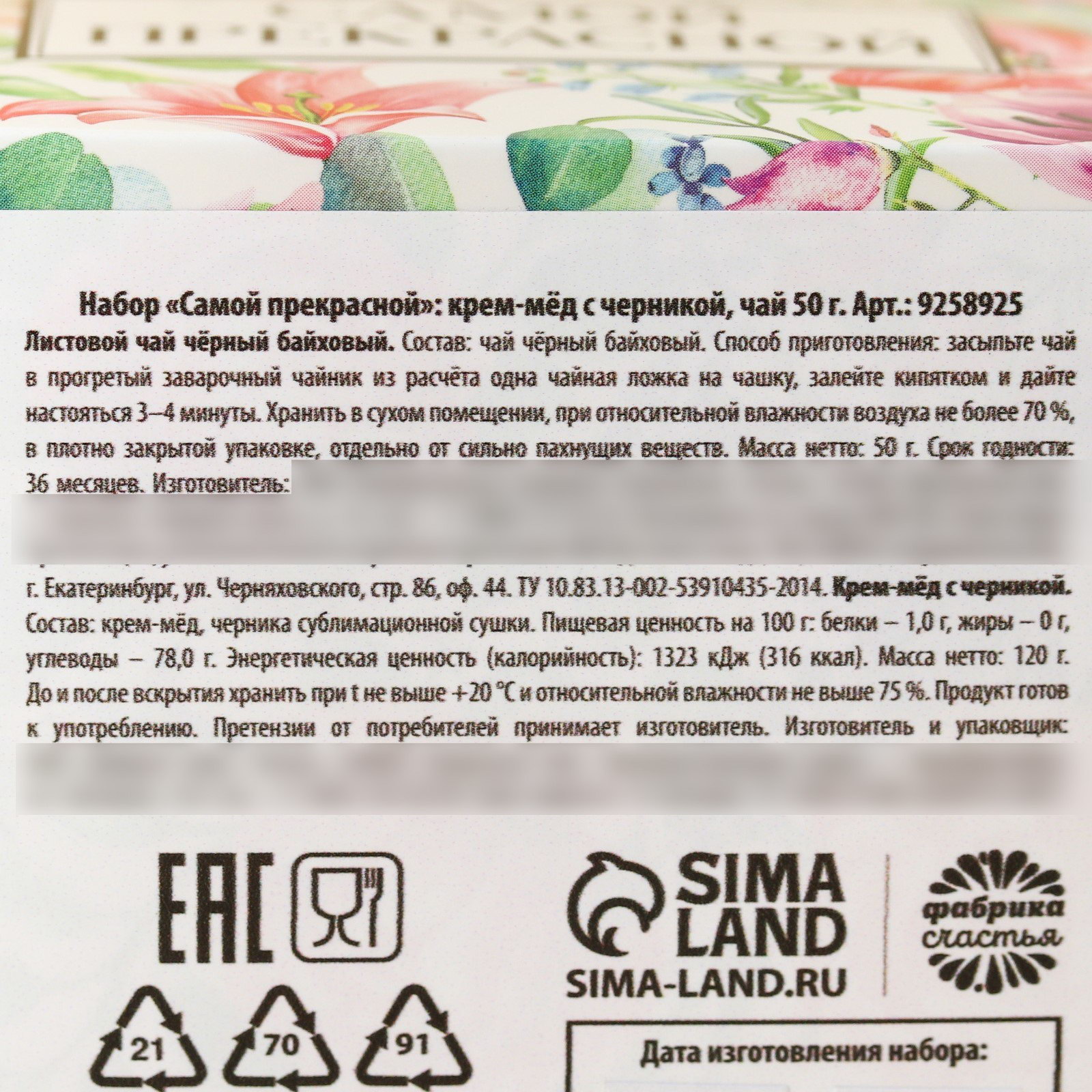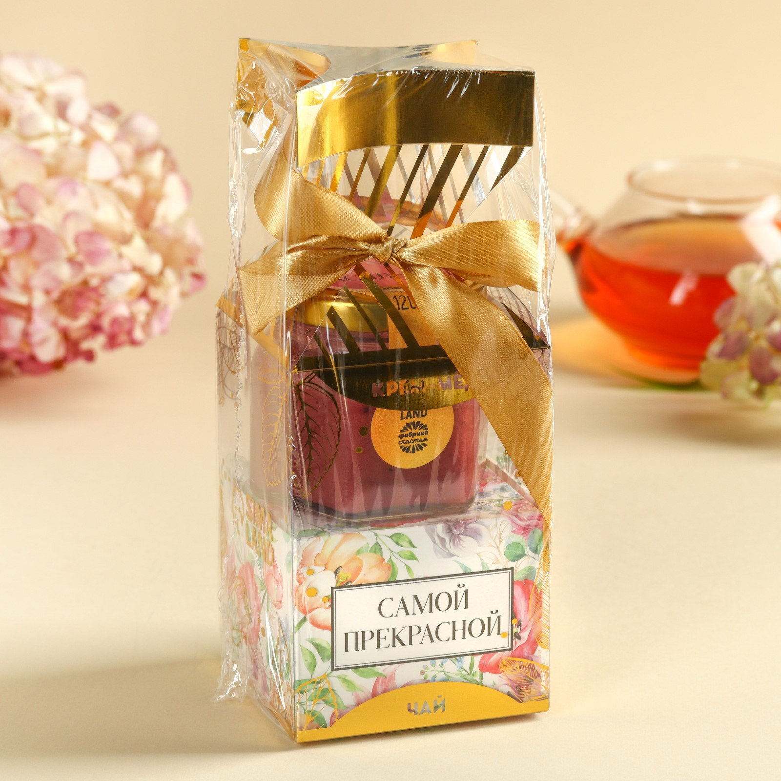 Подарочный набор "Самой прекрасной": крем-мёд с черникой 120 гр, чай 50 гр, Фабрика счастья, Россия