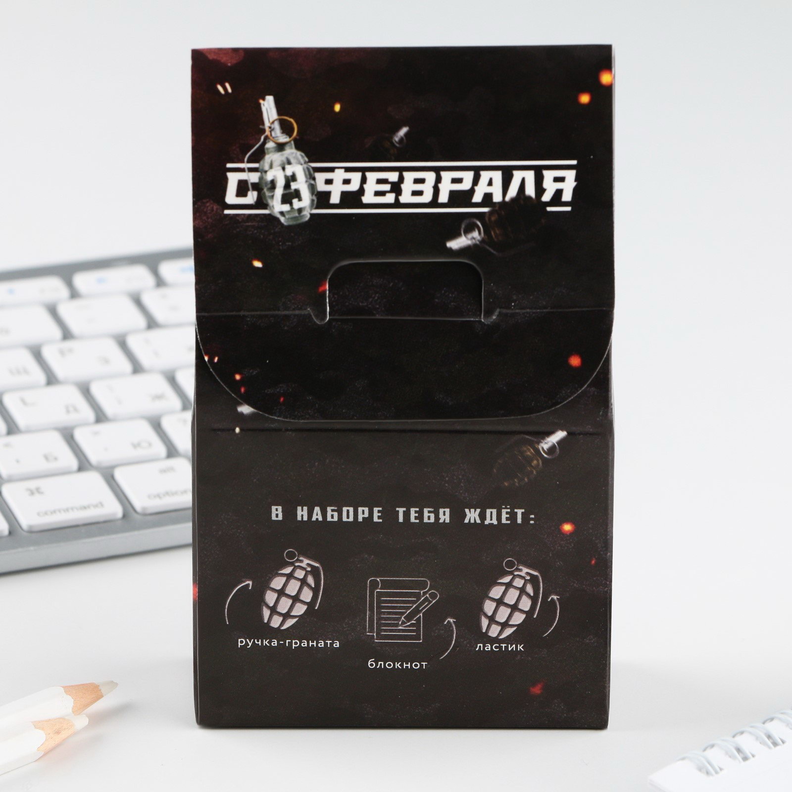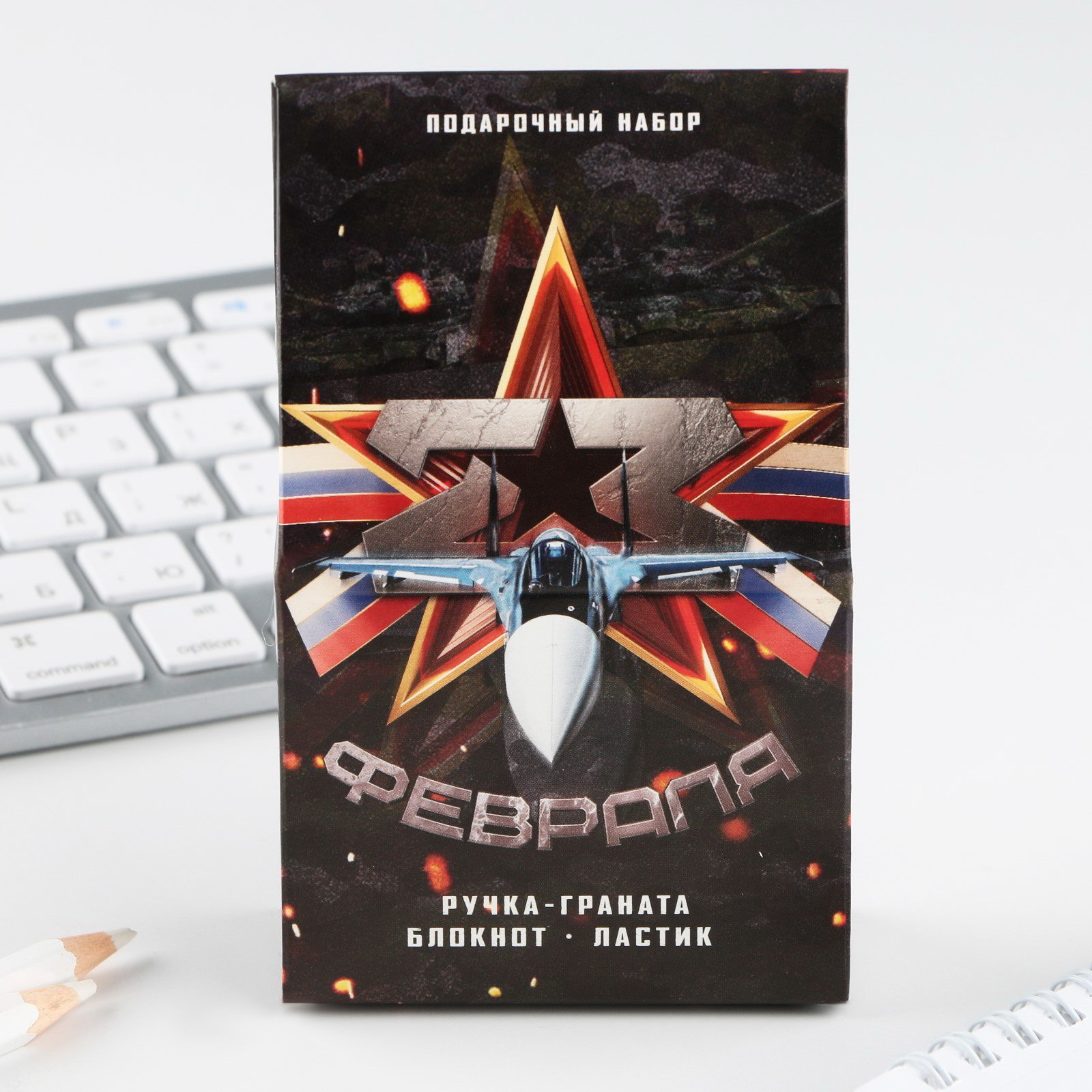 Подарочный набор: блокнот, ручка-фигурная и ластик "23 февраля", ArtFox, Россия