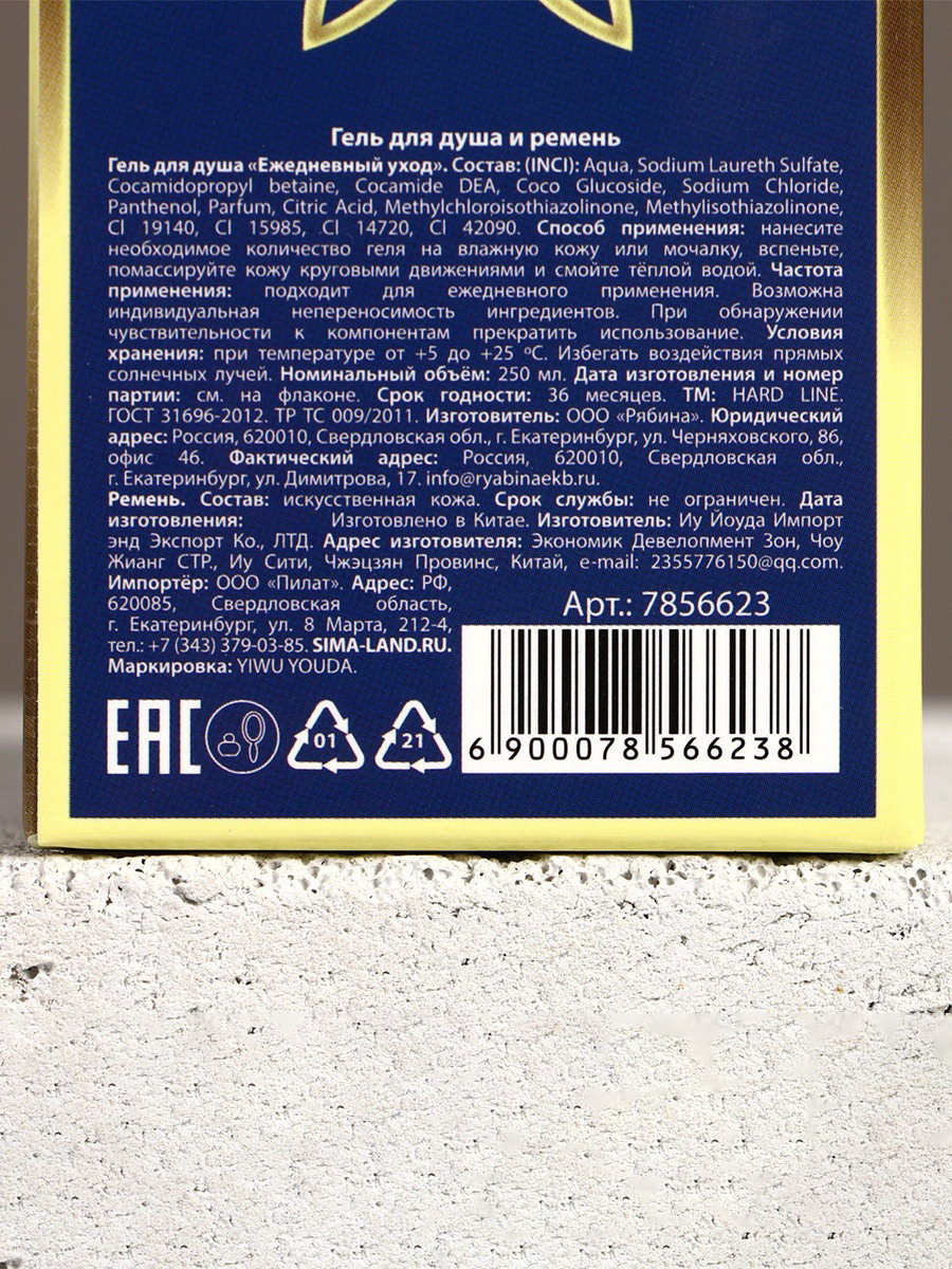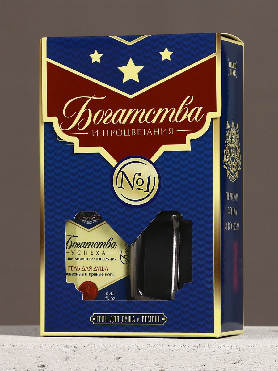 Подарочный набор "Богатства и процветания!", гель для душа виски 250 мл и ремень, 250 мл., Чистое счастье, Россия
