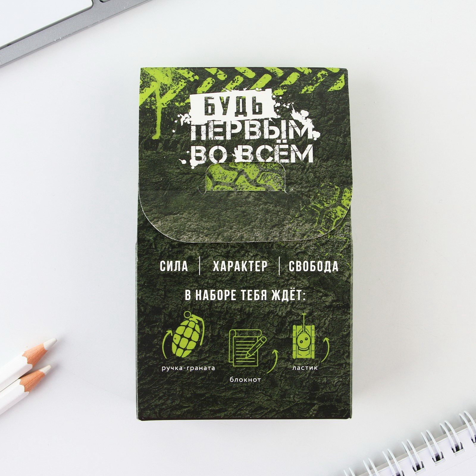Подарочный набор: блокнот, ручка-фигурная и ластик "Будь всегда впереди", ArtFox, Россия