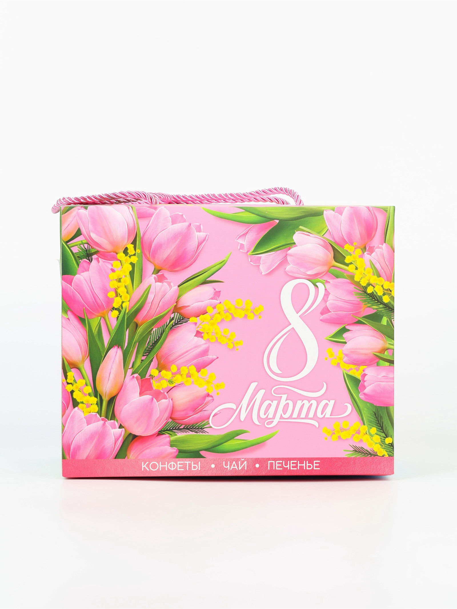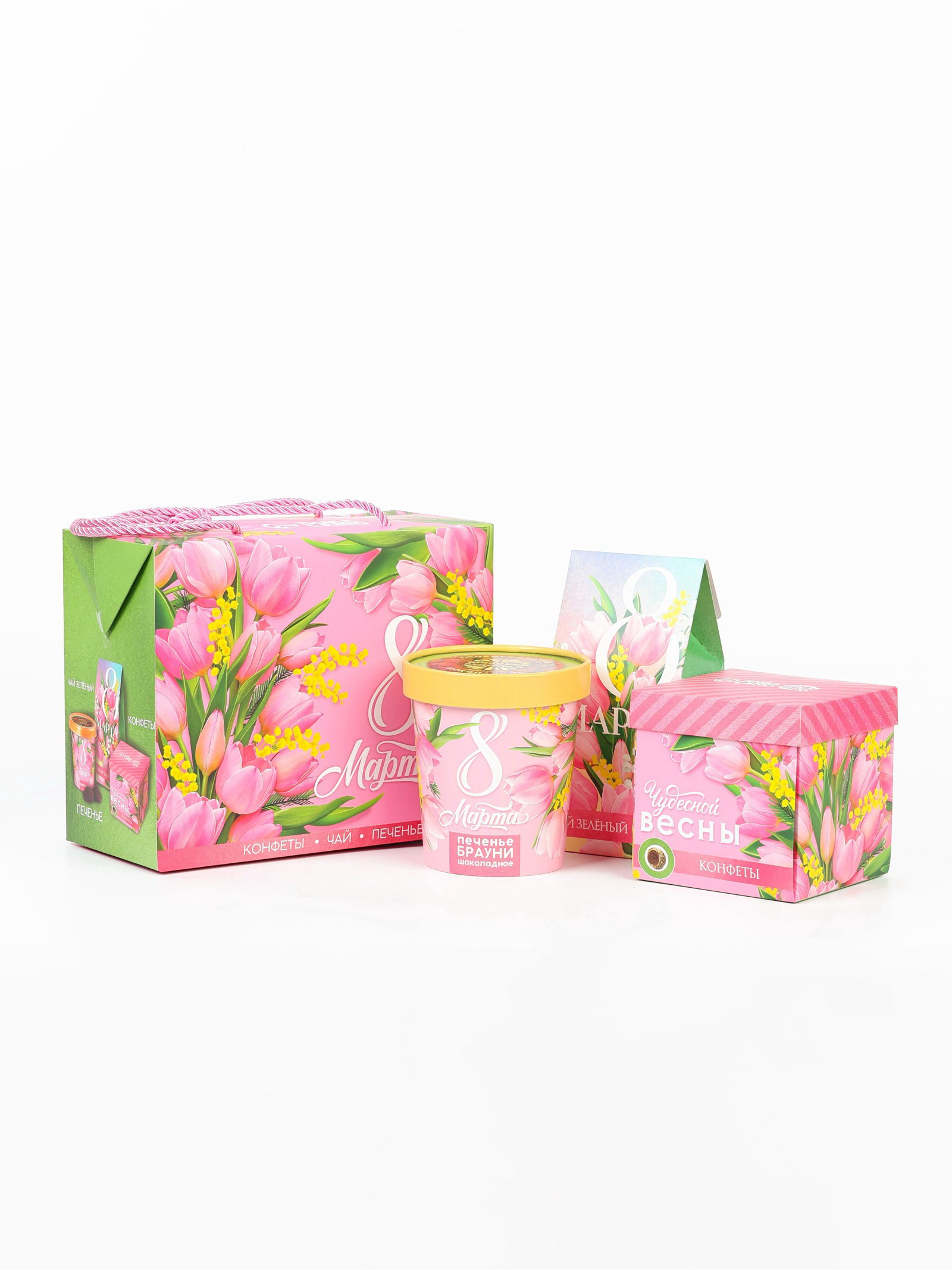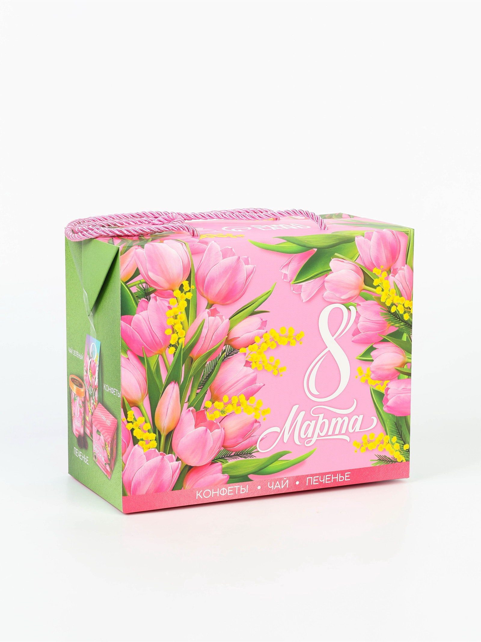 Подарочный набор "8 марта", чай зелёный со вкусом жасмина 50 гр, печенье брауни 120 гр, конфеты с шоколадной начинкой 110 гр, Фабрика счастья, Россия