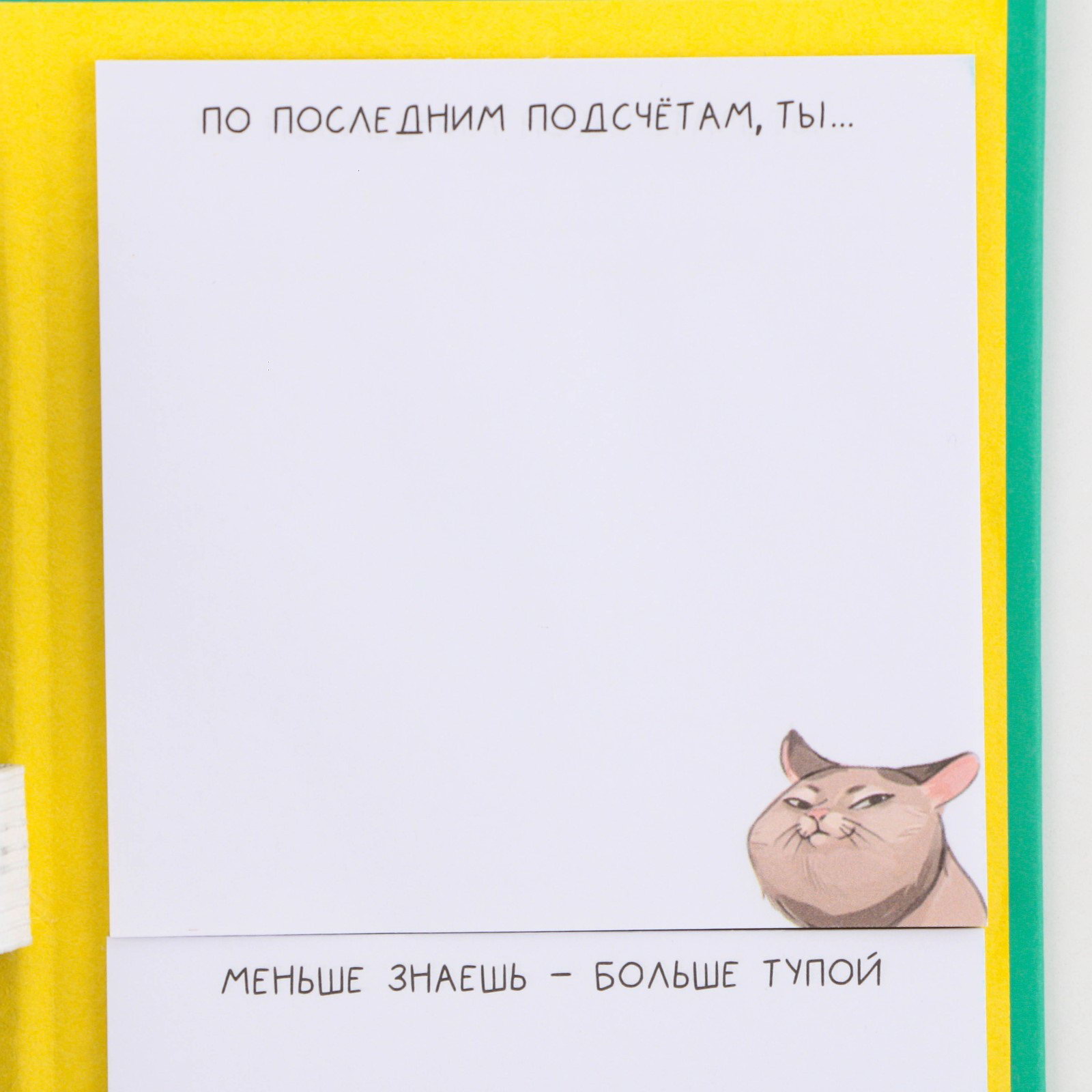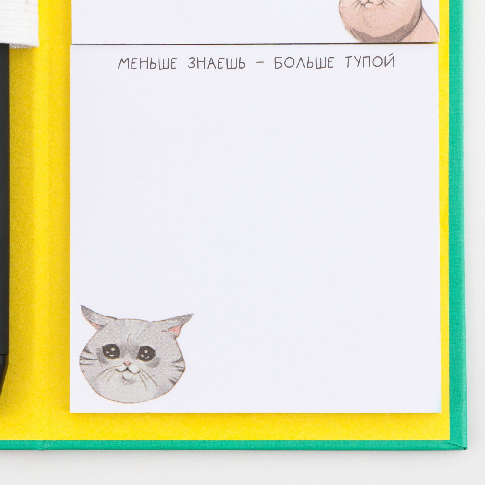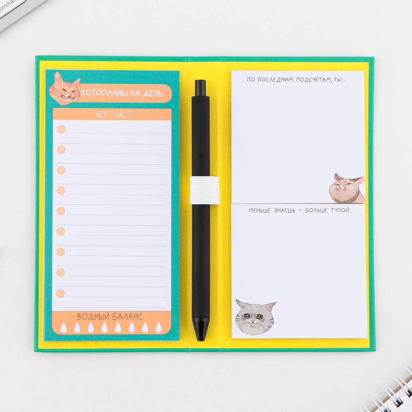 Блок бумаг для записей 3 блока по 30 листов, стикеры, ручка шариковая синяя 0.7 мм "Для котозаметок", 8.5x16.5x2 см., ArtFox, Китай