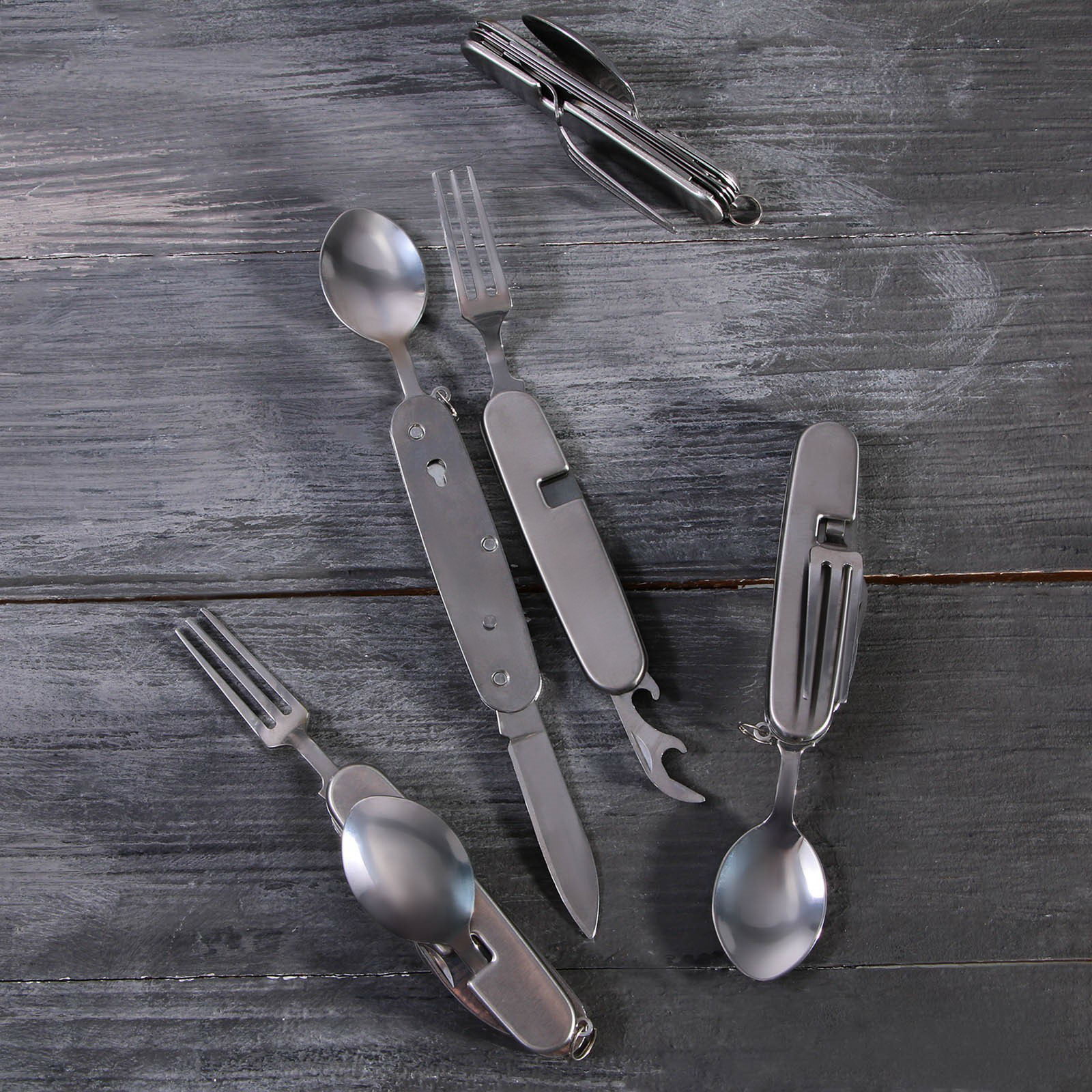 Набор посуды "В походе", кружка 4 шт., тарелка 4 шт., мультитул 4 шт., 17x19x17 см., MODE FORREST, Китай