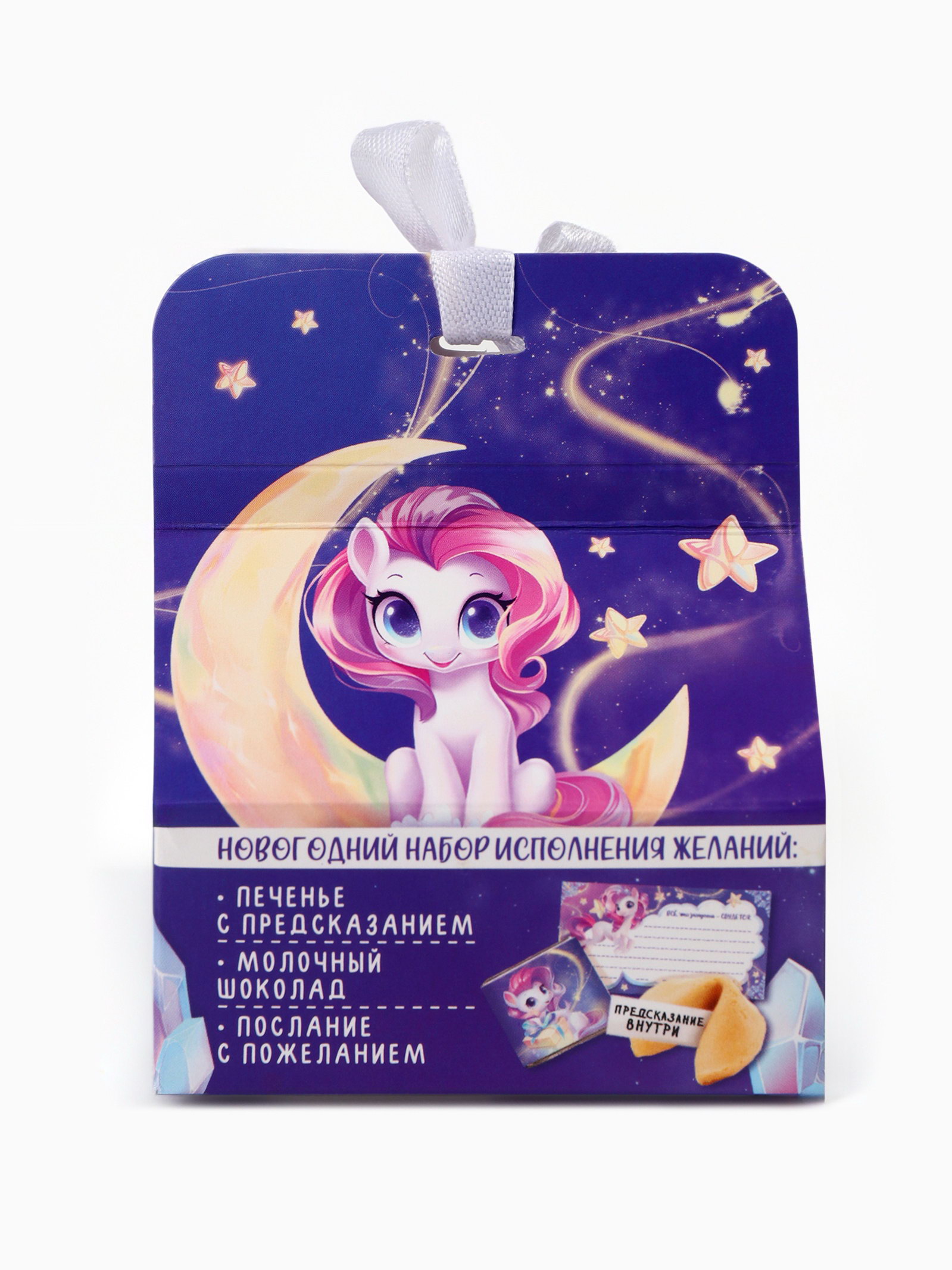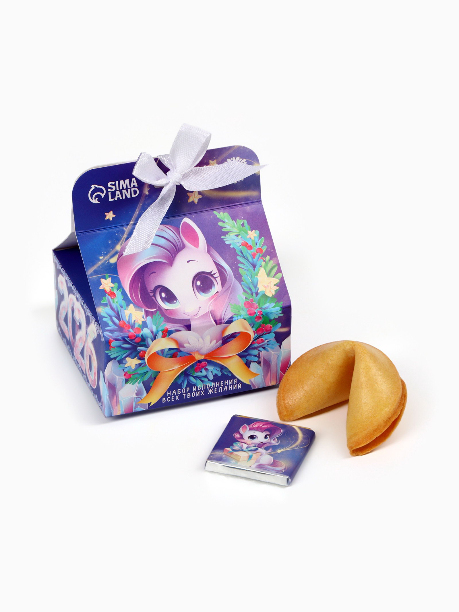 Подарочный набор новогодний "Волшебства", печенье с предсказанием 1 шт., молочный шоколад 5 г, послание с пожеланием, Фабрика счастья, Россия