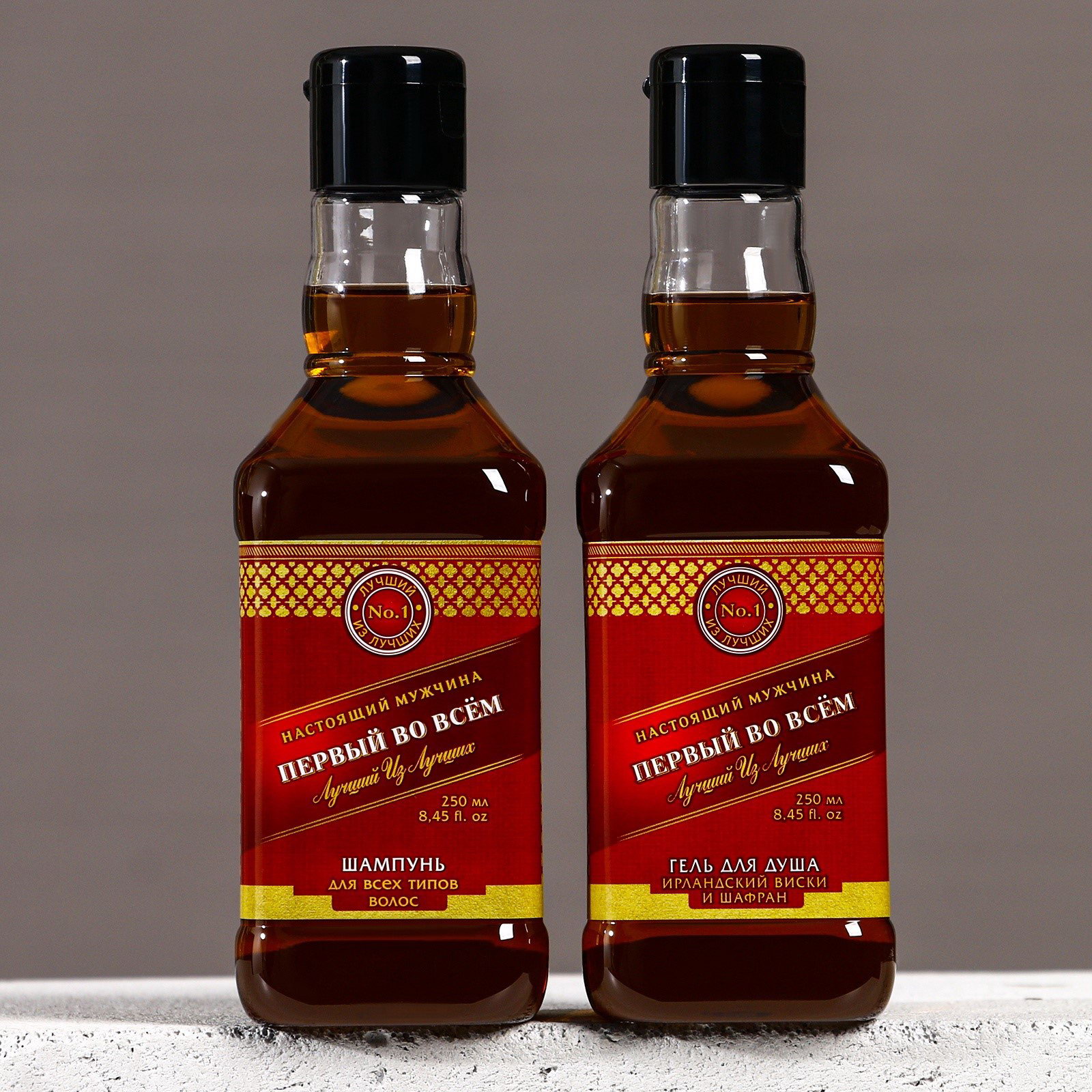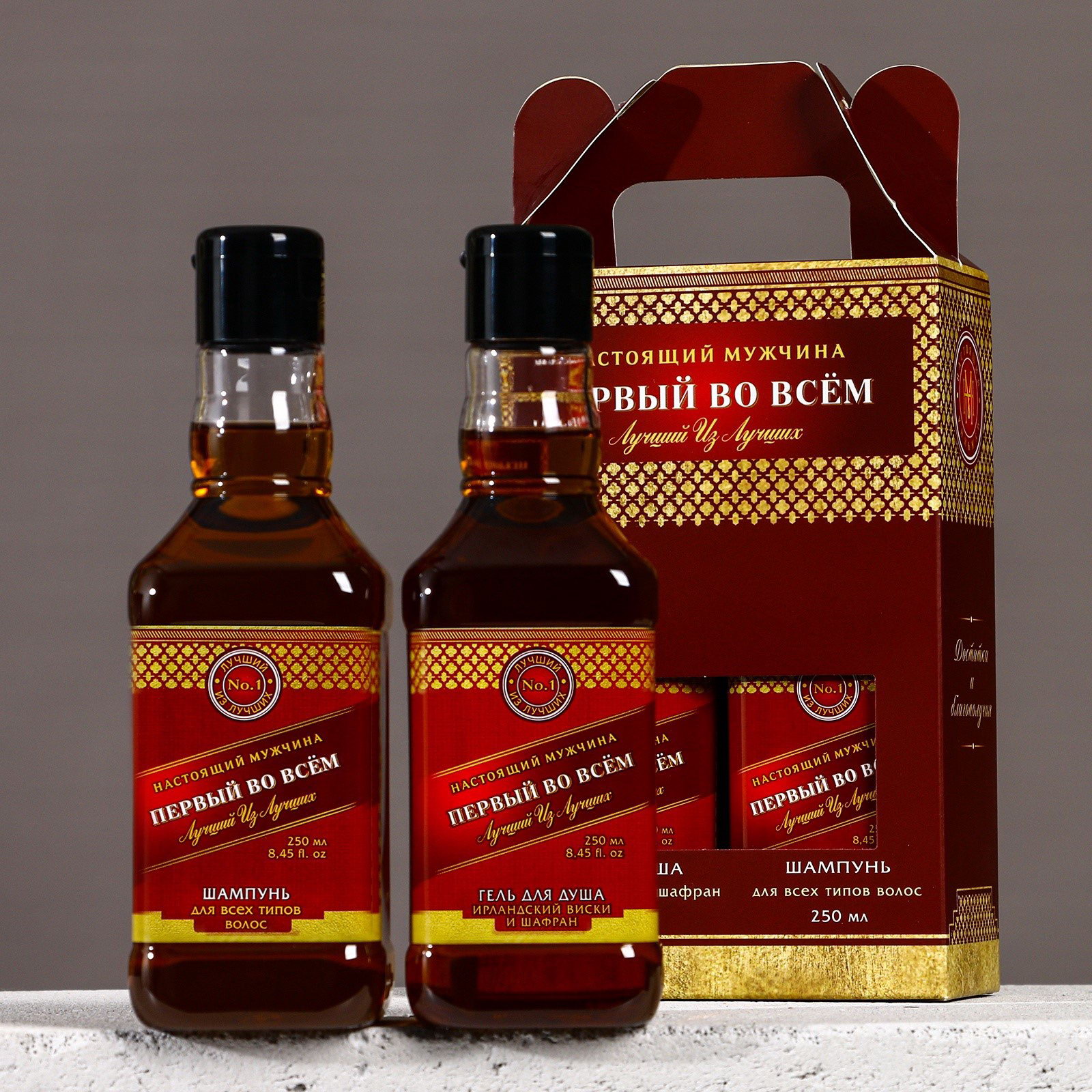 Набор "Первому во всём", гель для душа и шампунь для волос во флаконах виски, 2х250 мл, Чистое счастье, Россия