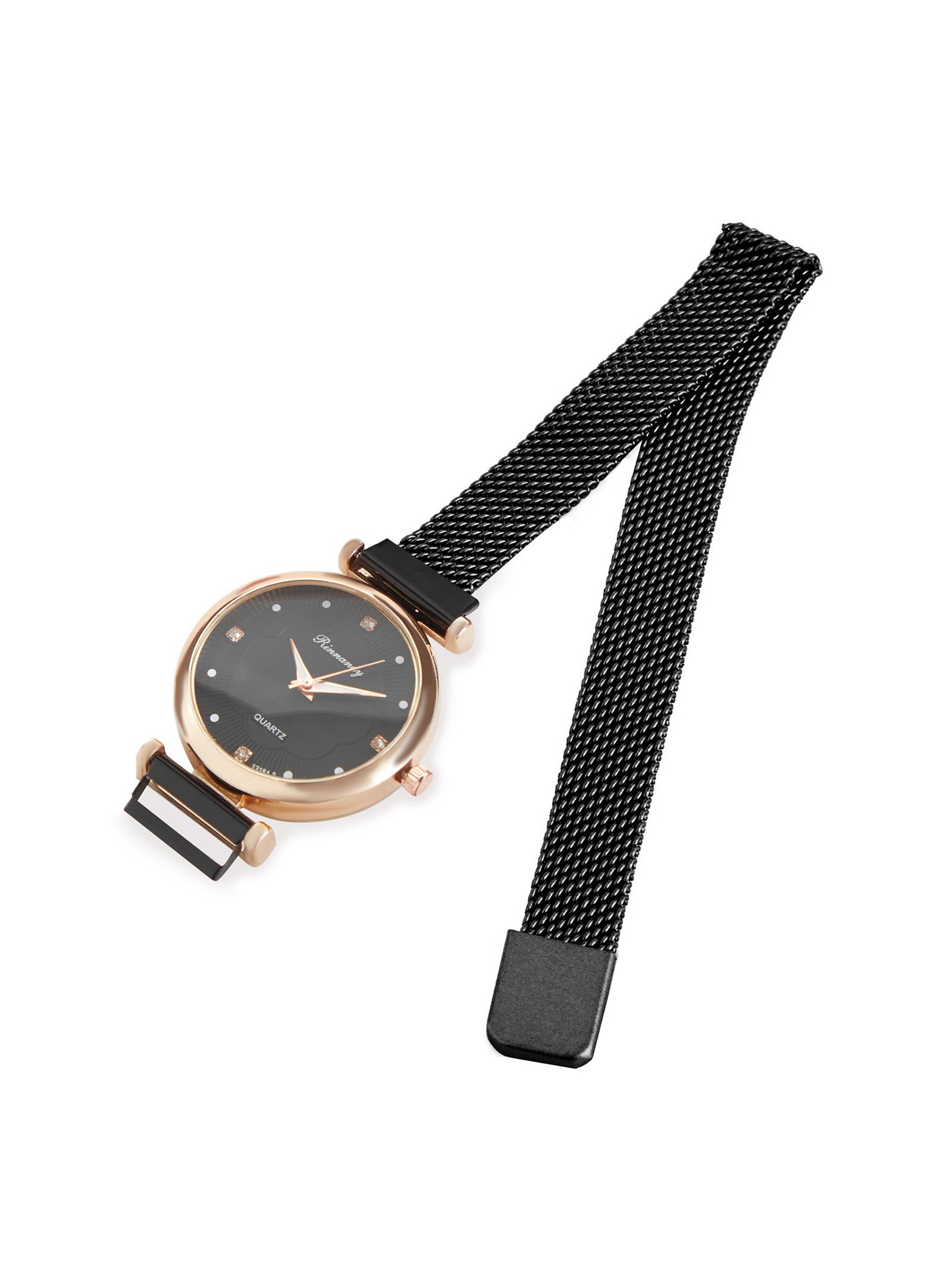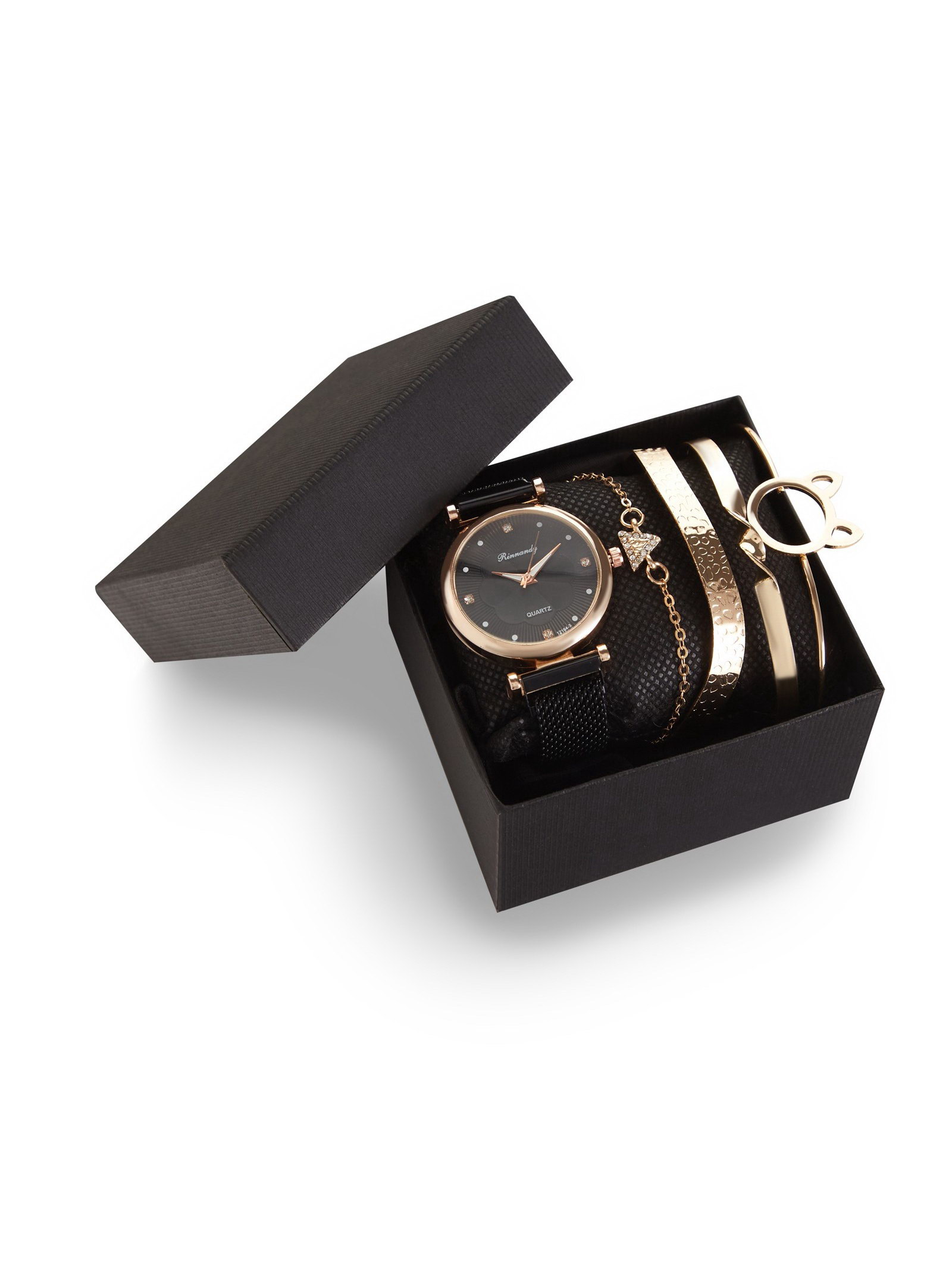 Женский подарочный набор Rinnady 5 в 1: наручные часы и 4 браслета, чёрный, Китай