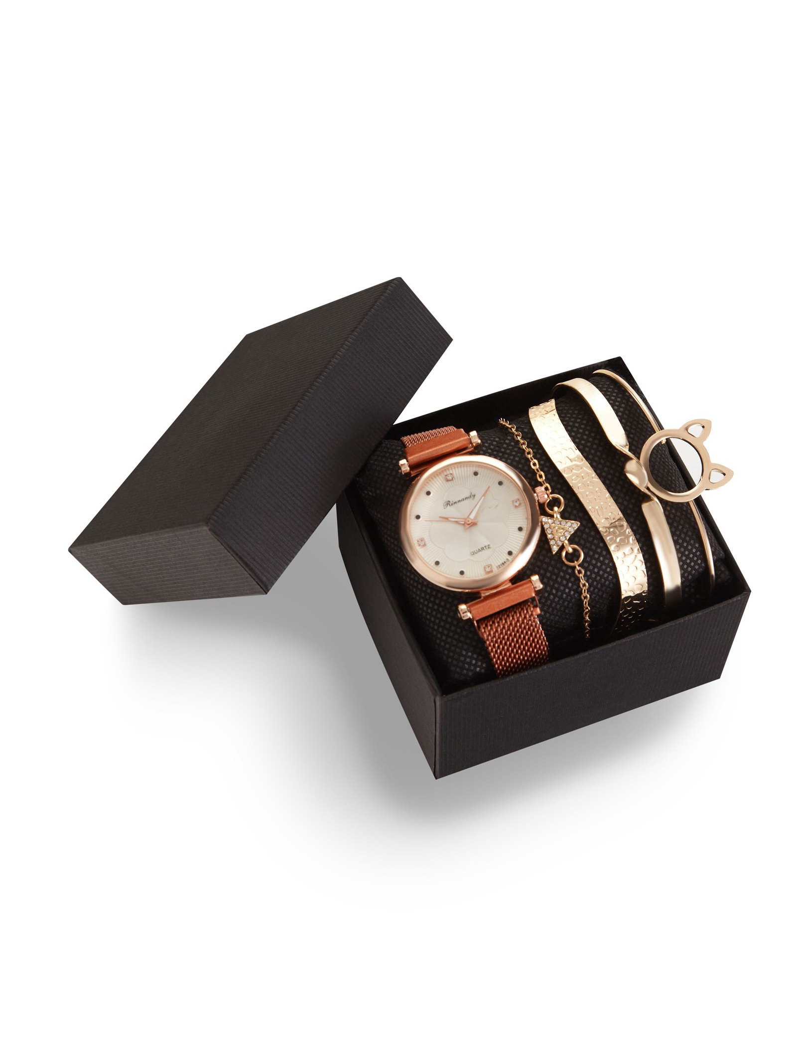 Женский подарочный набор Rinnady 5 в 1: наручные часы и 4 браслета, розовый, Китай