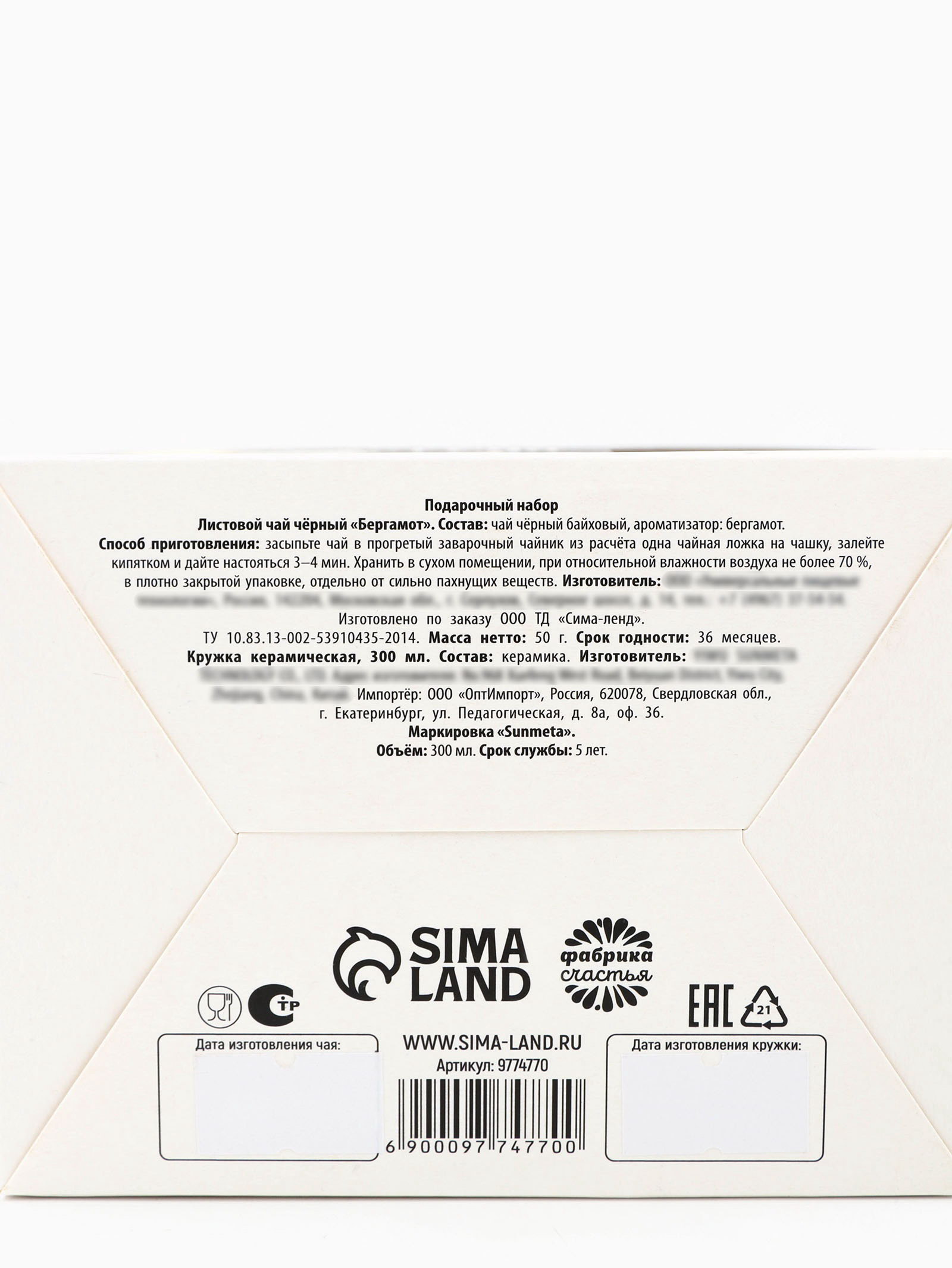 Запрет реализации по сегментам: 00000000266, 00000000593 Тематика подарка: Посуда, Продукты питания Для кого: Для женщины, Унисекс Составляющие набора: Кружка, Чай Возраст: Для взрослых, Для детей Размер упаковки: 8.5 x 10 x 11.5 см. tnved: 902300000 tnved: 902300000 Новогодняя коллекция: Новый год Набор: Да Вес нетто, г: 50 Подарочный чай: Да Добавки чая: Бергамот Вид чая: Чёрный Фасовка: Весовой Тематика праздника: Новый год Символ года: Нет Вид упаковки: Подарочная коробка Адресат: Без адресата В наборе, шт.: 2 При оформление заказа, просим запрашивать актуальные сроки годности у менеджераСостав: чай чёрный байховый, ароматизатор: бергамот. Способ приготовления: засыпьте чай в прогретый заварочный чайник из расчета одна чайная ложка на чашку, залейте кипятком и дайте настояться 3-4 минуты. Срок годности: 36 месяцев Масса нетто: 50 гр Кружка Состав: керамика. Срок службы: 5 лет Объем: 300 мл | ||