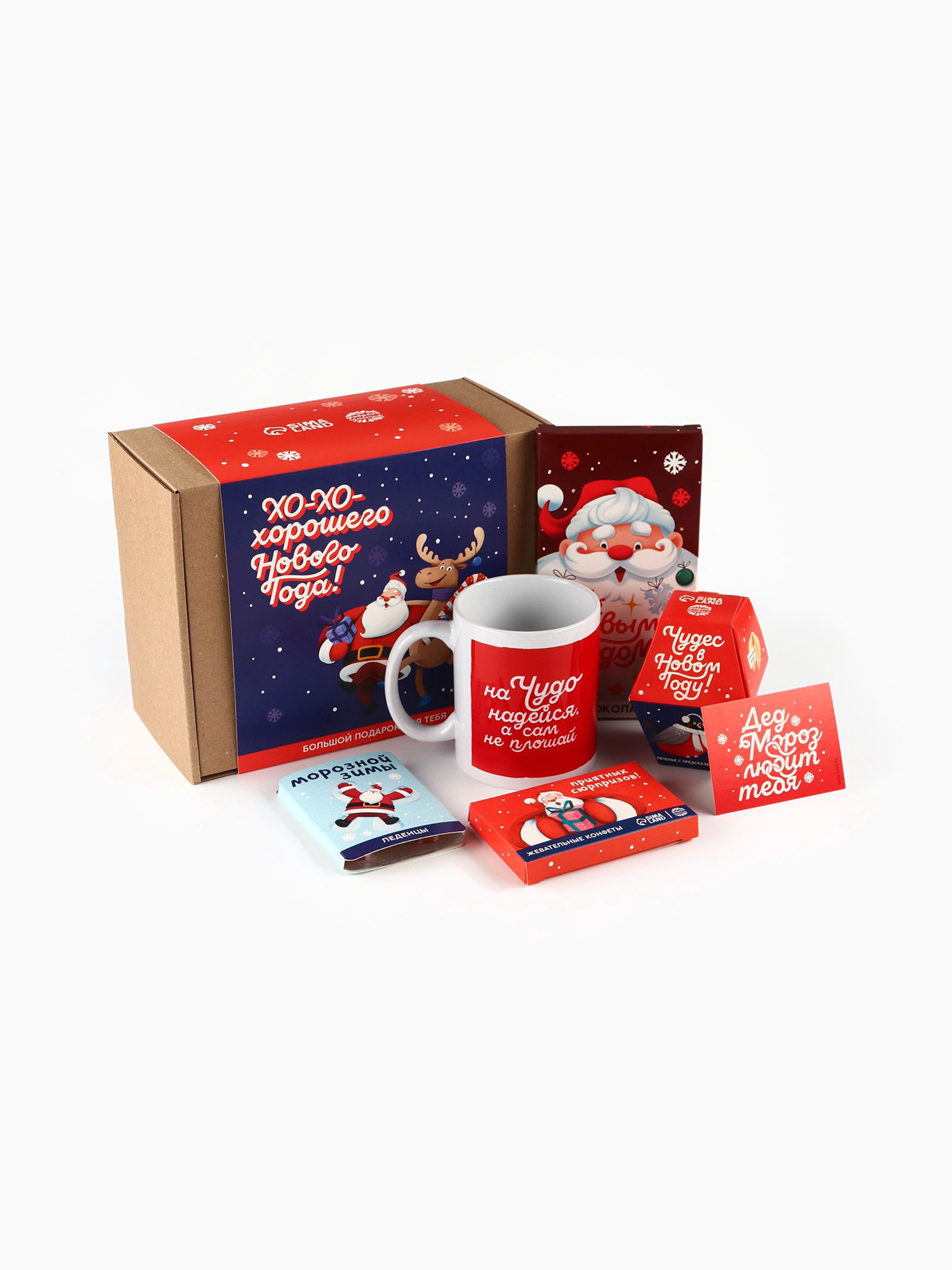 Подарочный набор "Хорошего Нового года", кружка, жевательная конфета, молочный шоколад, печенье с предсказанием, жевательная резинка, Фабрика счастья, Россия