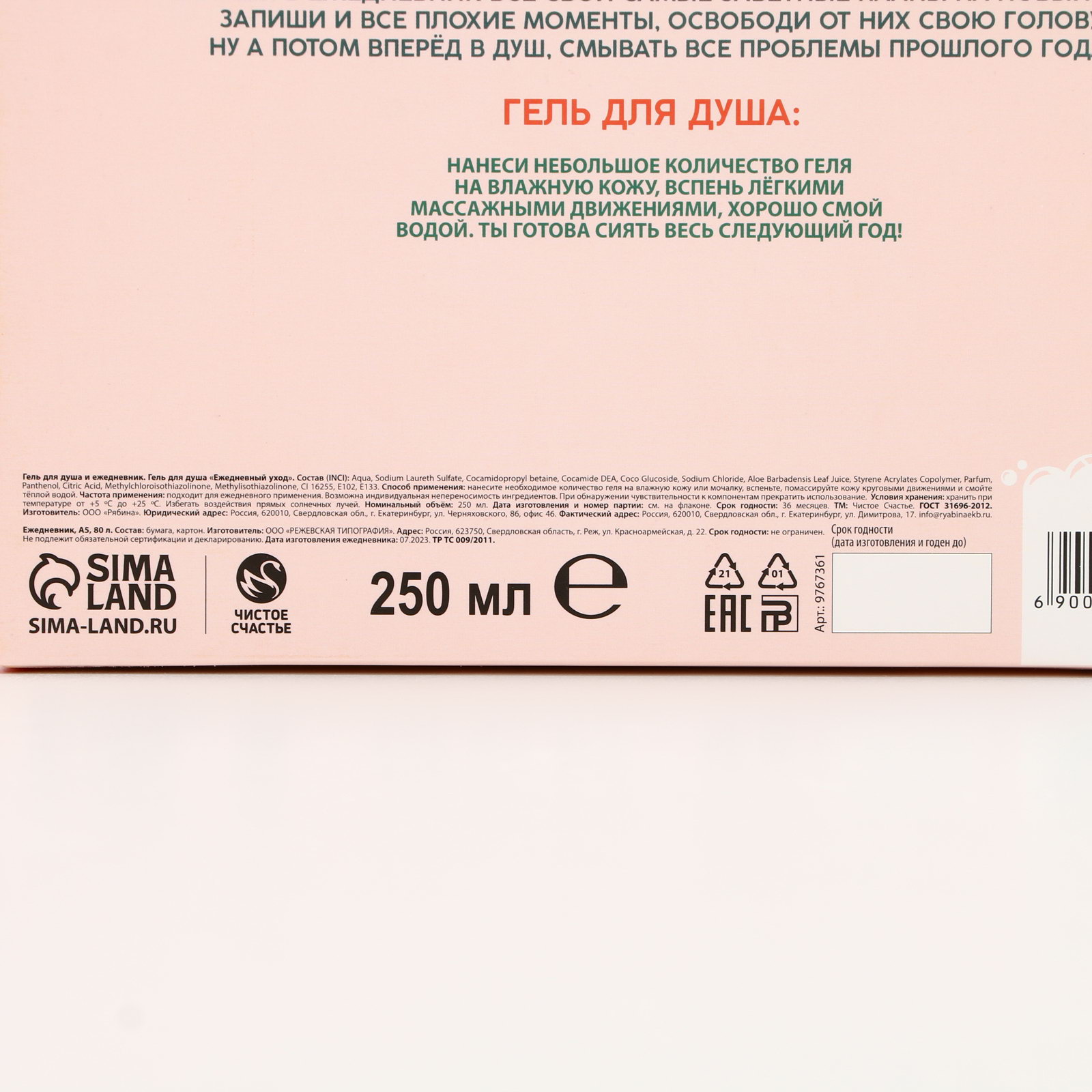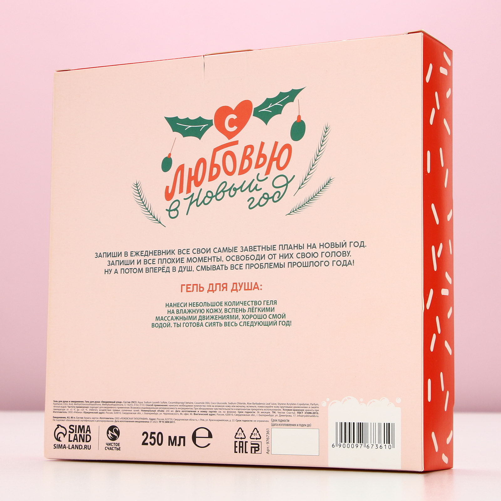Новогодний подарочный набор косметики "Время сиять", гель для душа 250 мл и ежедневник, 250 мл., Чистое счастье, Россия
