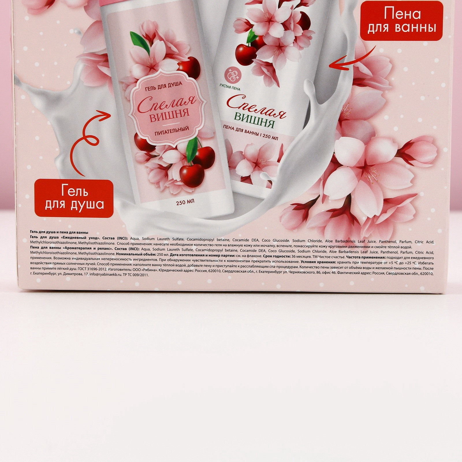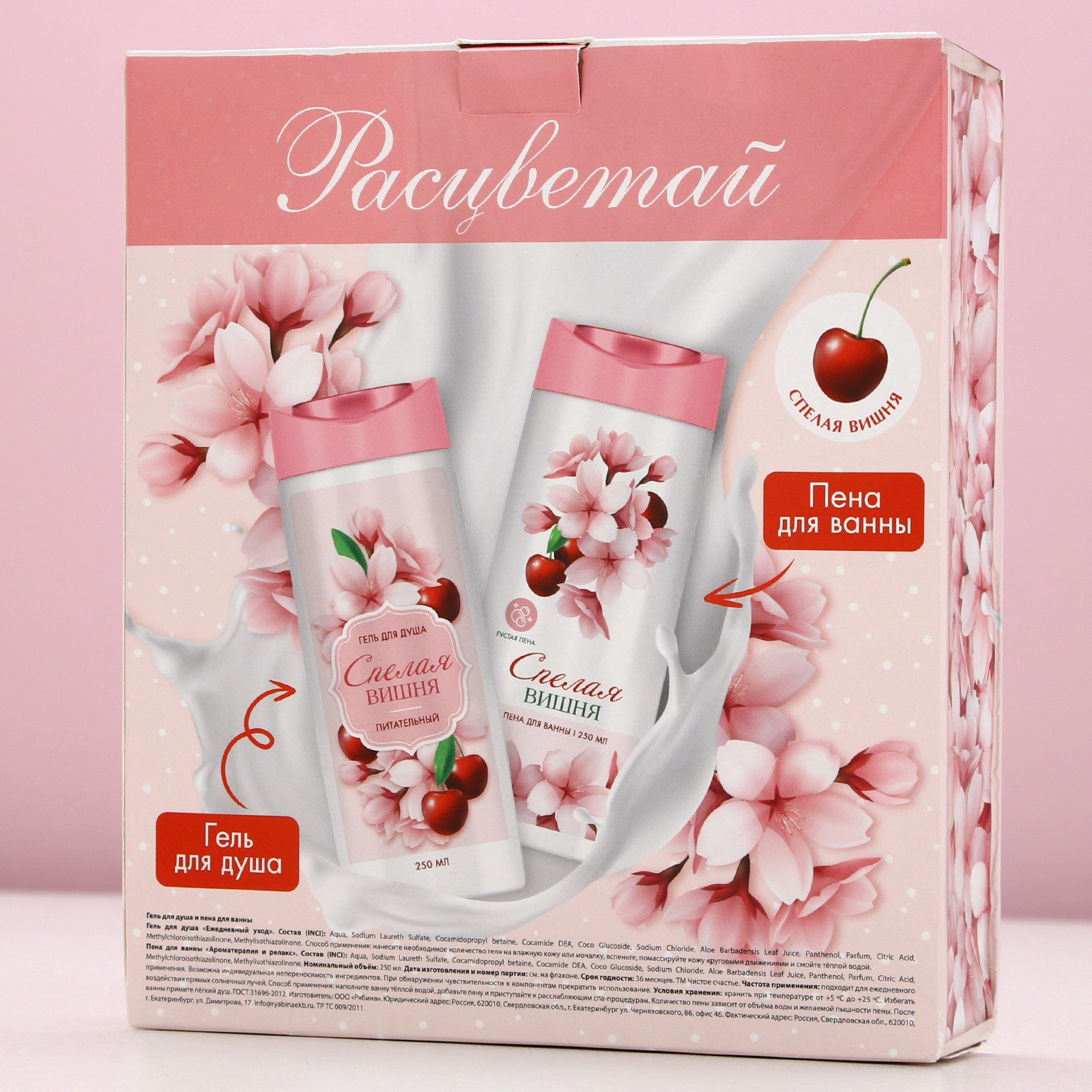 Форма выпуска: Флакон без дозатора, Формовые Вид: Гель, Гель для душа, Пена, Пена для ванн Назначение: Очищение, детокс, Тонизирование Область применения: Для тела, Для тела Возраст: Взрослый, Для взрослых Тематика праздника: 8 Марта, День матери, Универсальная тематика Составляющие набора: Гель для душа, Пена для ванн Размер упаковки: 17.5 x 20 x 5.5 см. Темпер. ограничение НЕ НИЖЕ ℃: +5 Темпер. ограничение НЕ ВЫШЕ ℃: +25 Аромат: Вишня Набор: Да Цвет: Розовый Адресат: Без адресата Вид упаковки: Подарочная коробка Символ года: Нет Вес, г/Объём, мл: 250 tnved: 3401300000 tnved: 3401300000 В наборе, шт.: 2 Для кого: Для женщины Тематика подарка: Уходовая косметика | ||