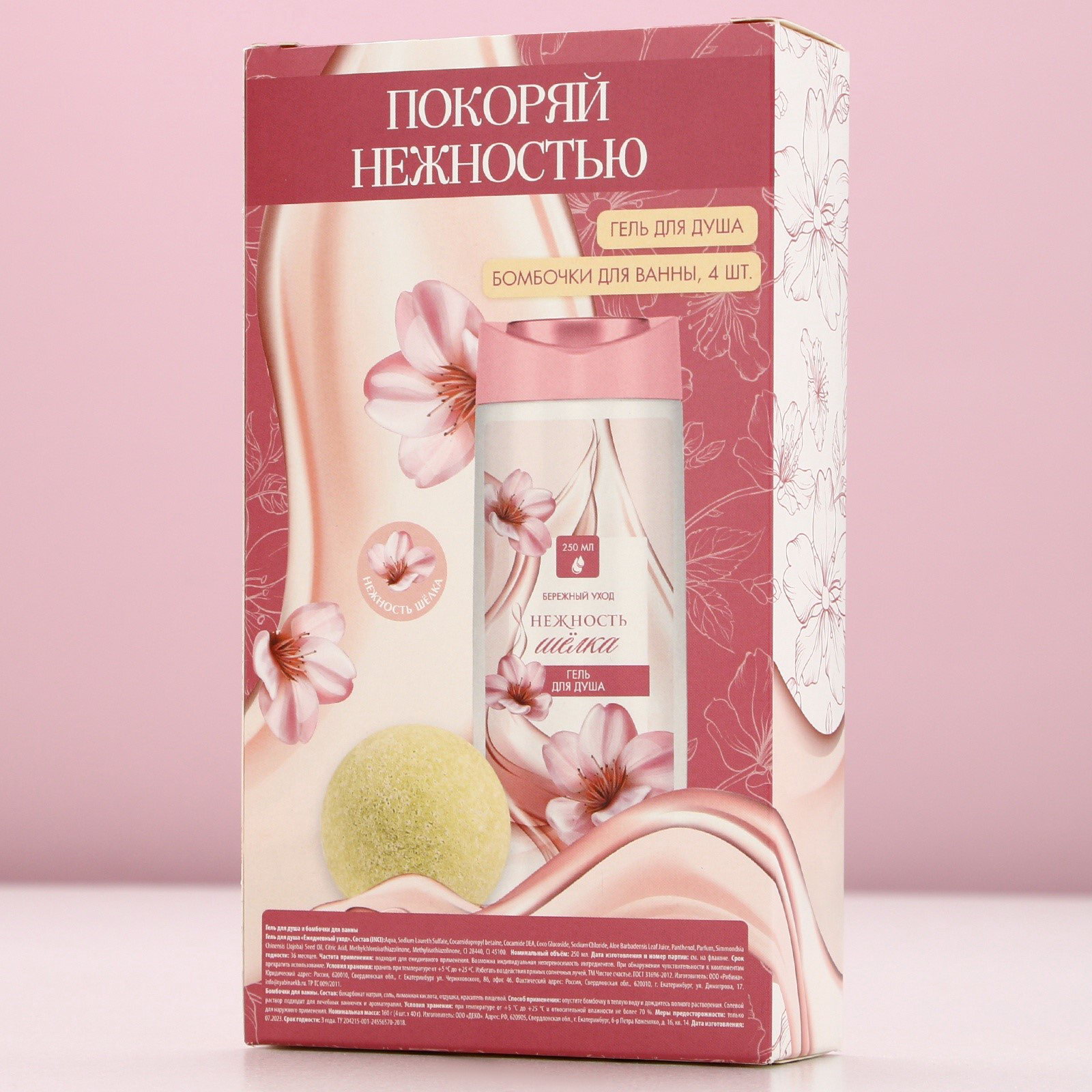 Подарочный набор косметики "Покоряй нежностью", гель для душа 250 мл и бомбочки для ванны 4 x 40 г, ЧИСТОЕ СЧАСТЬЕ, 250 мл., Чистое счастье, Россия