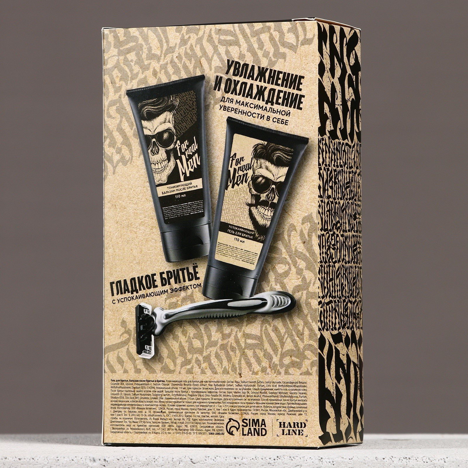 Подарочный набор косметики For real man, гель для бритья 110 мл, бальзам после бритья 110 мл, бритва, 110 мл., HARD LINE, Россия