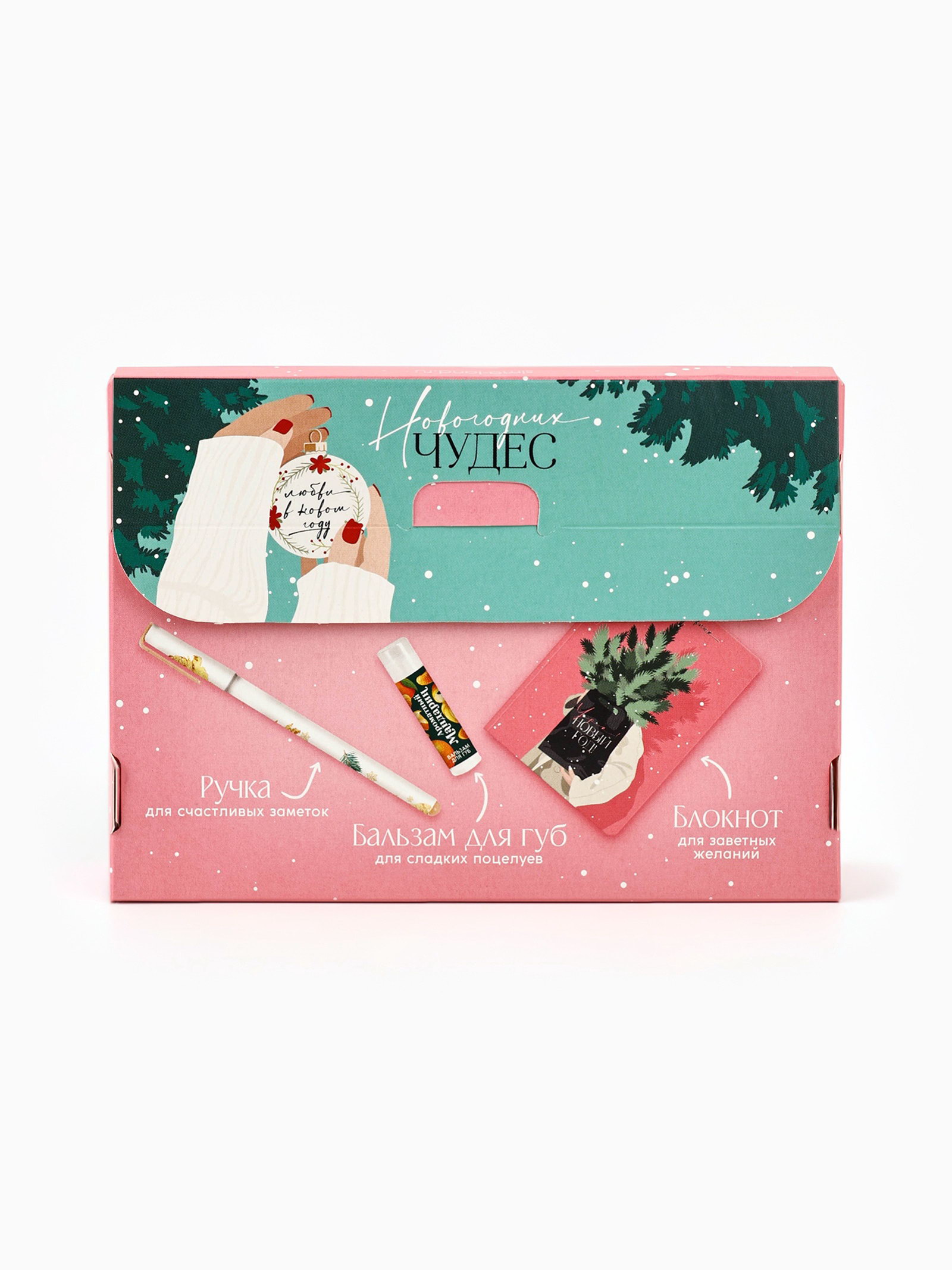 Подарочный набор новогодний, блокнот, ручка и бальзам для губ "Мечты сбудутся в новом году!", ArtFox, Китай