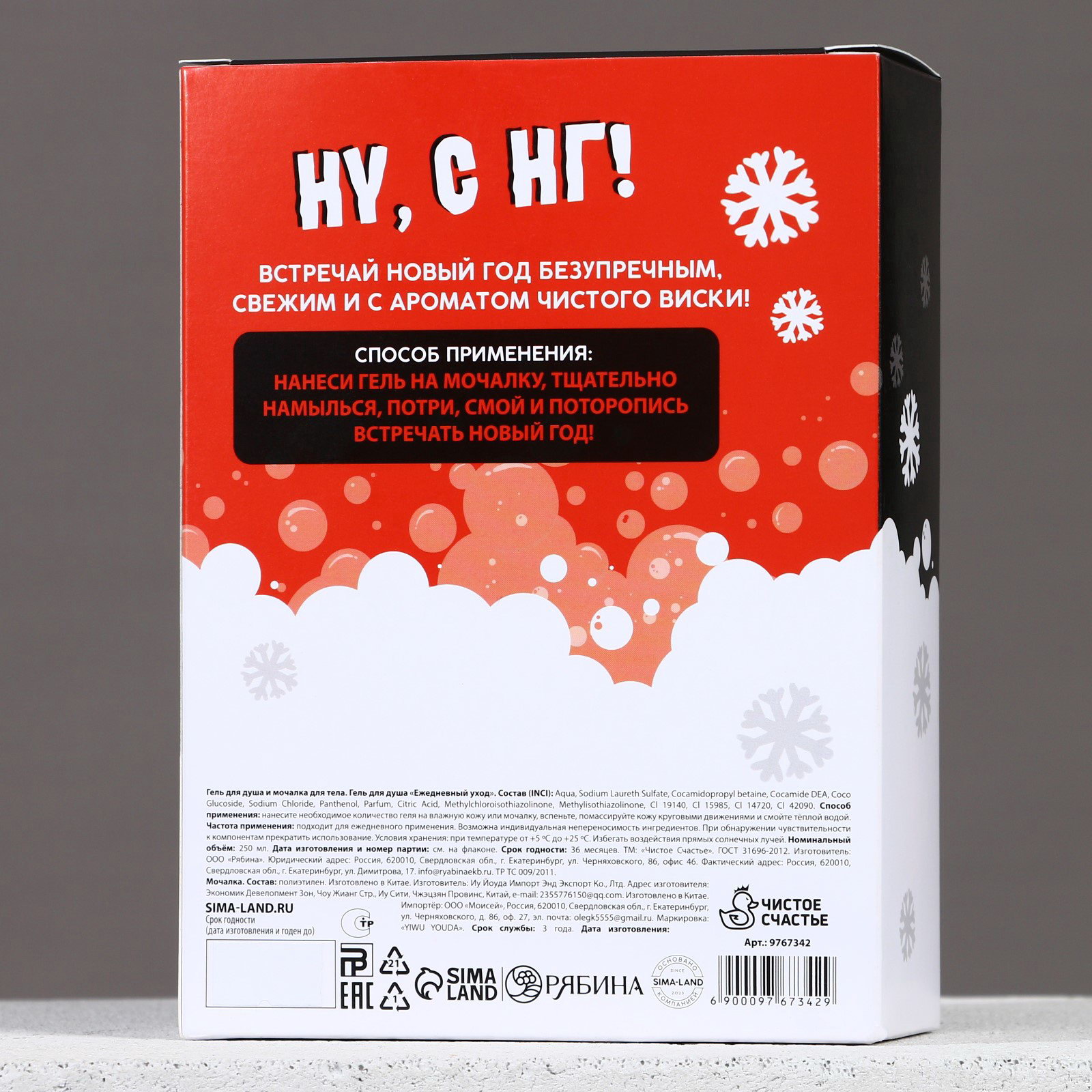 Новогодний подарочный набор косметики "Кайфового праздника": гель для душа 250 мл и мочалка для тела, 250 мл., Чистое счастье, Россия