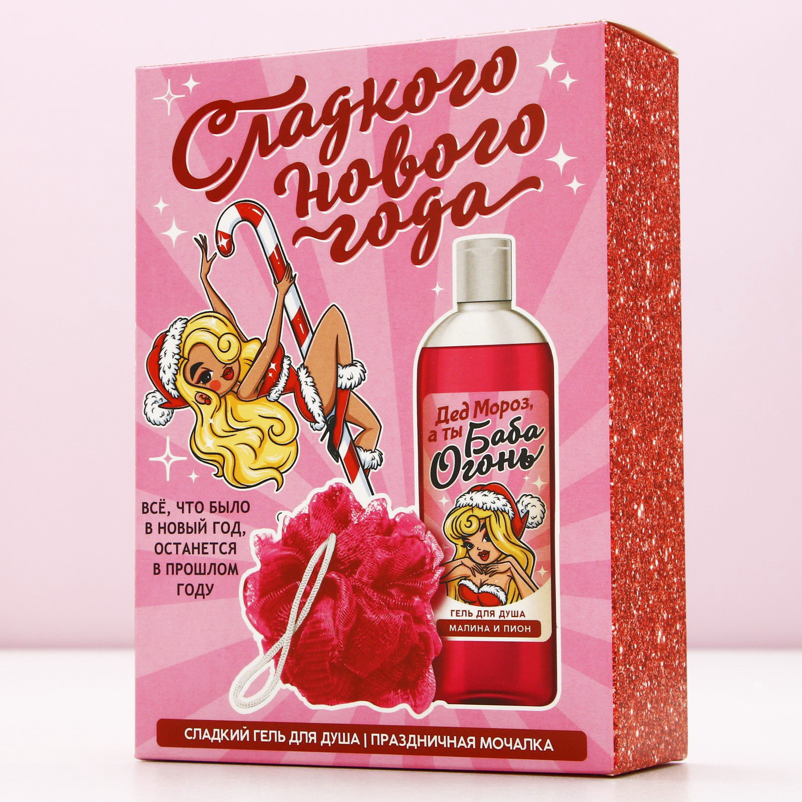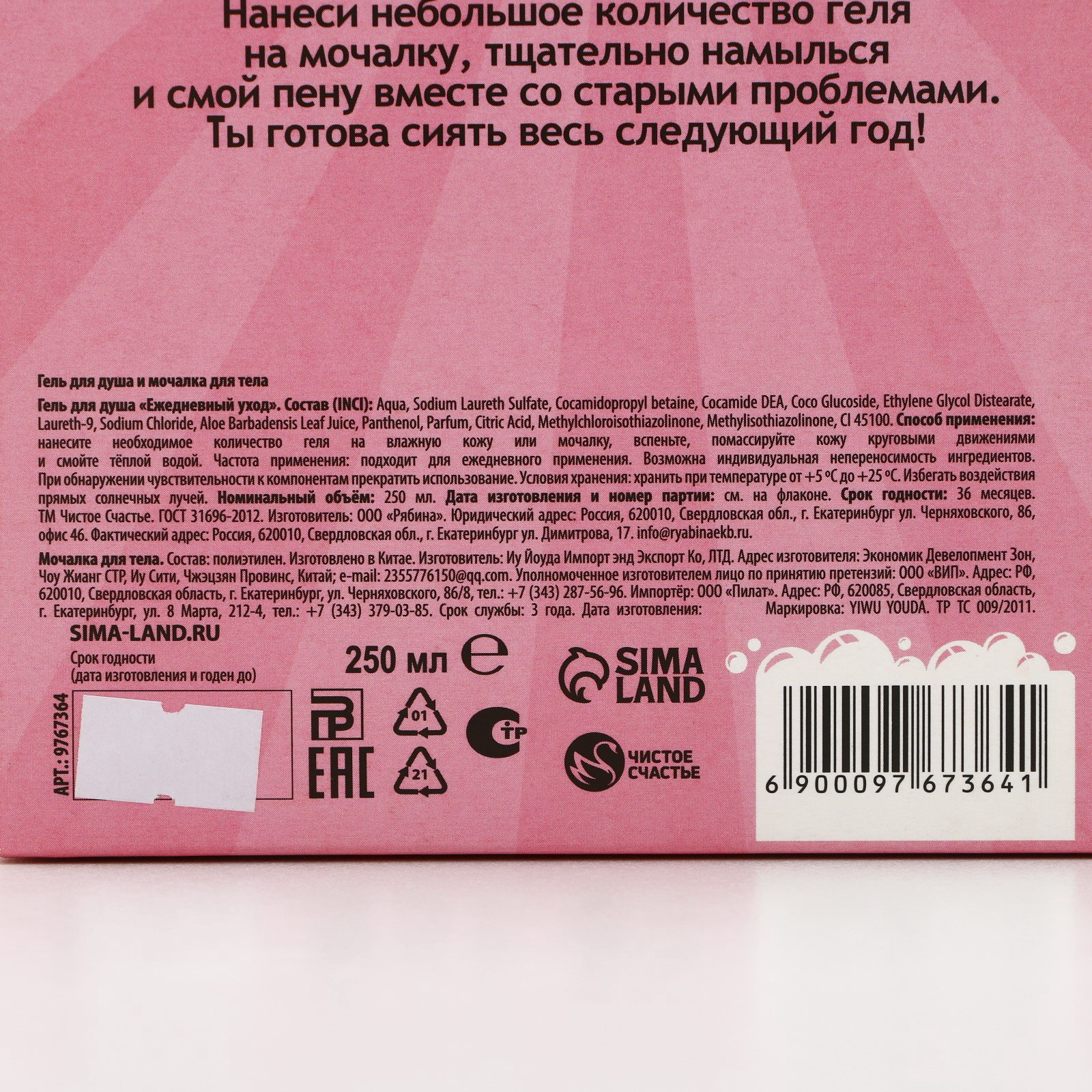 Подарочный набор косметики "Сладкого Нового Года", гель для душа 250 мл и мочалка для тела, 250 мл., Чистое счастье, Россия