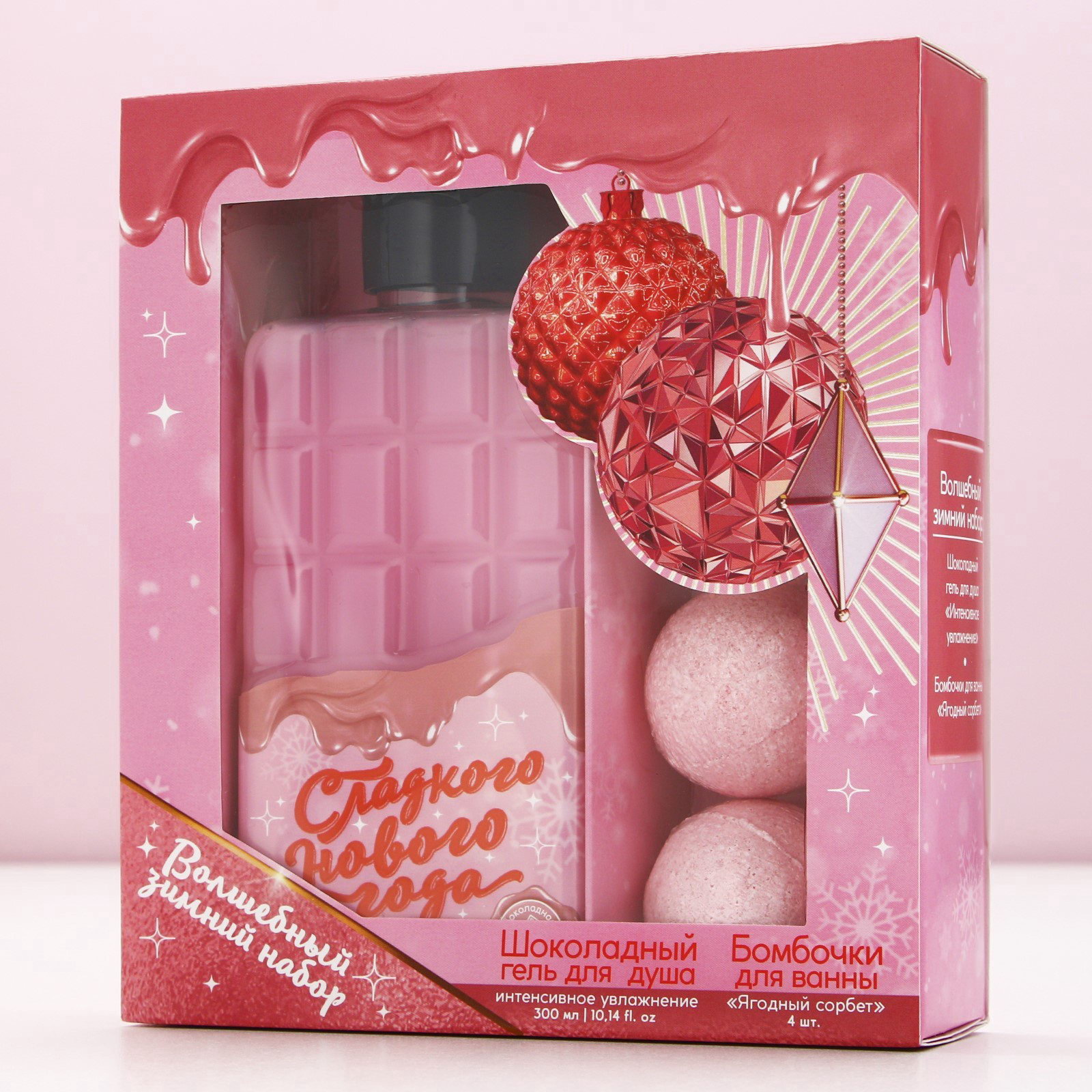 Подарочный набор женский "Сладкого Нового года", гель для душа 300 мл, бомбочки для ванны 4x40 г, 300 мл., Чистое счастье, Россия
