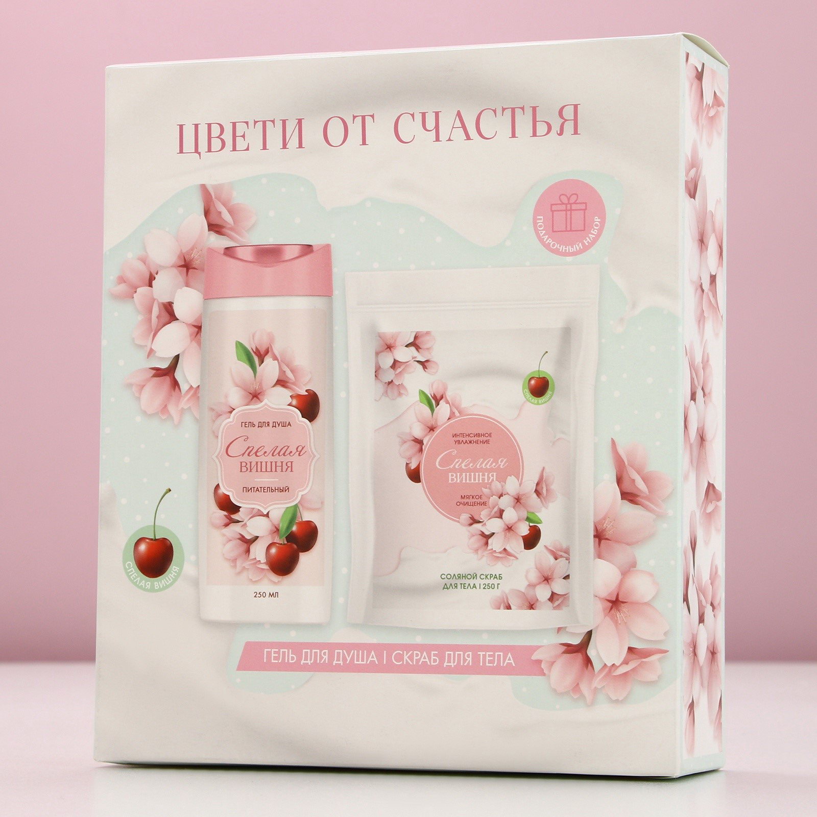 Подарочный набор косметики "Цвети от счастья!", гель для душа 250 мл и скраб для тела соляной 250 г, 250 мл., Чистое счастье, Россия