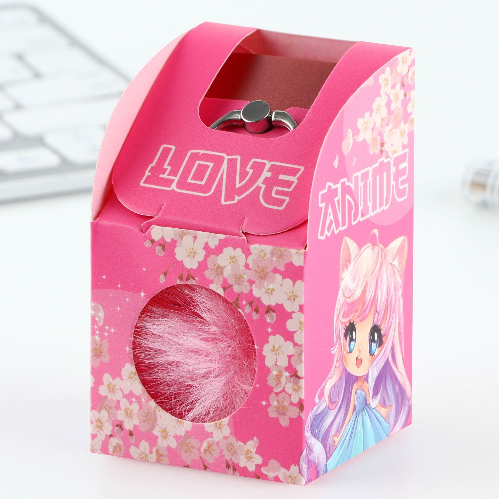 Подарочный набор, подставка для телефона-кольцо и брелок "Аниме", 5x5x8.3 см., ArtFox, Китай