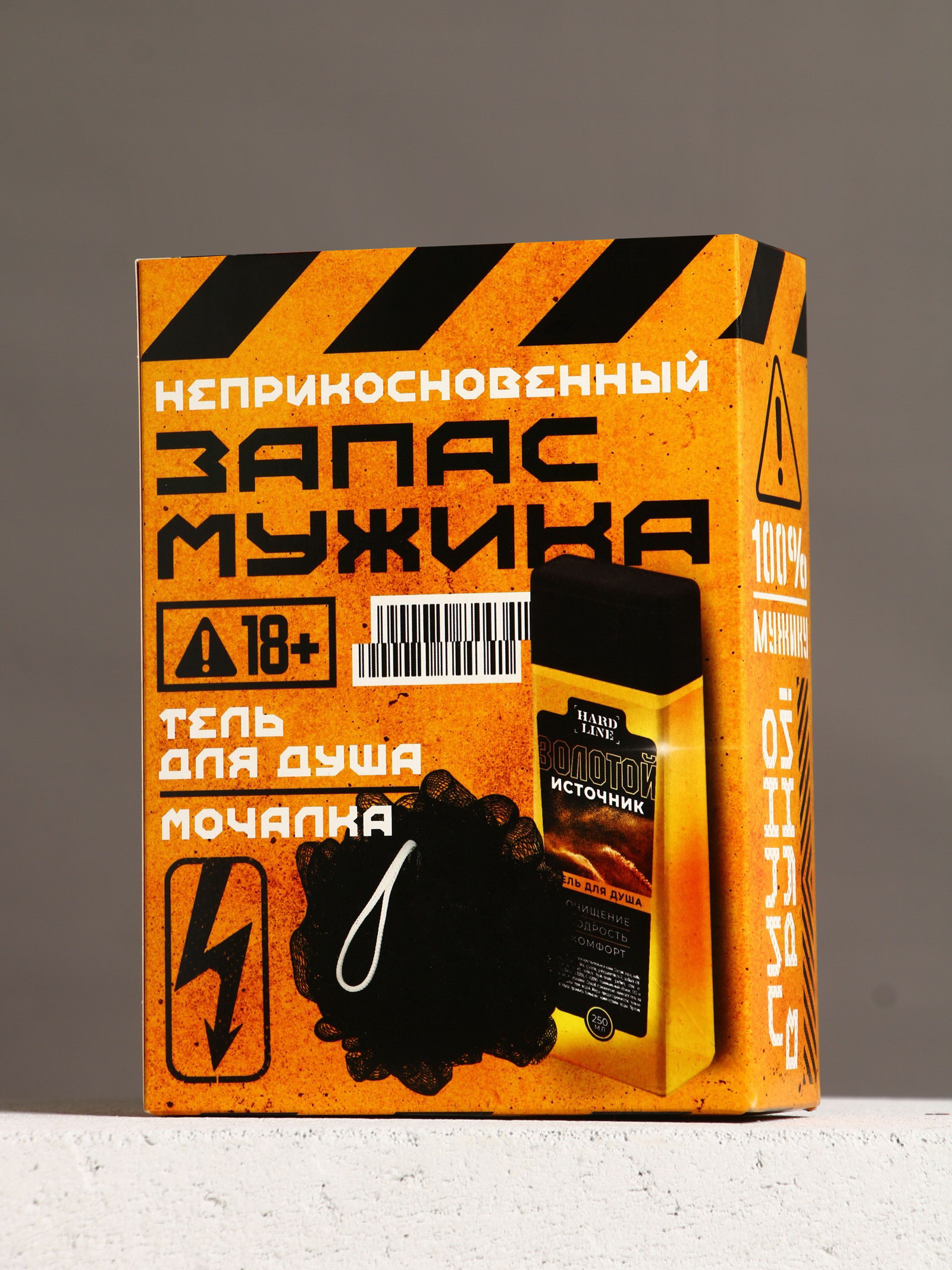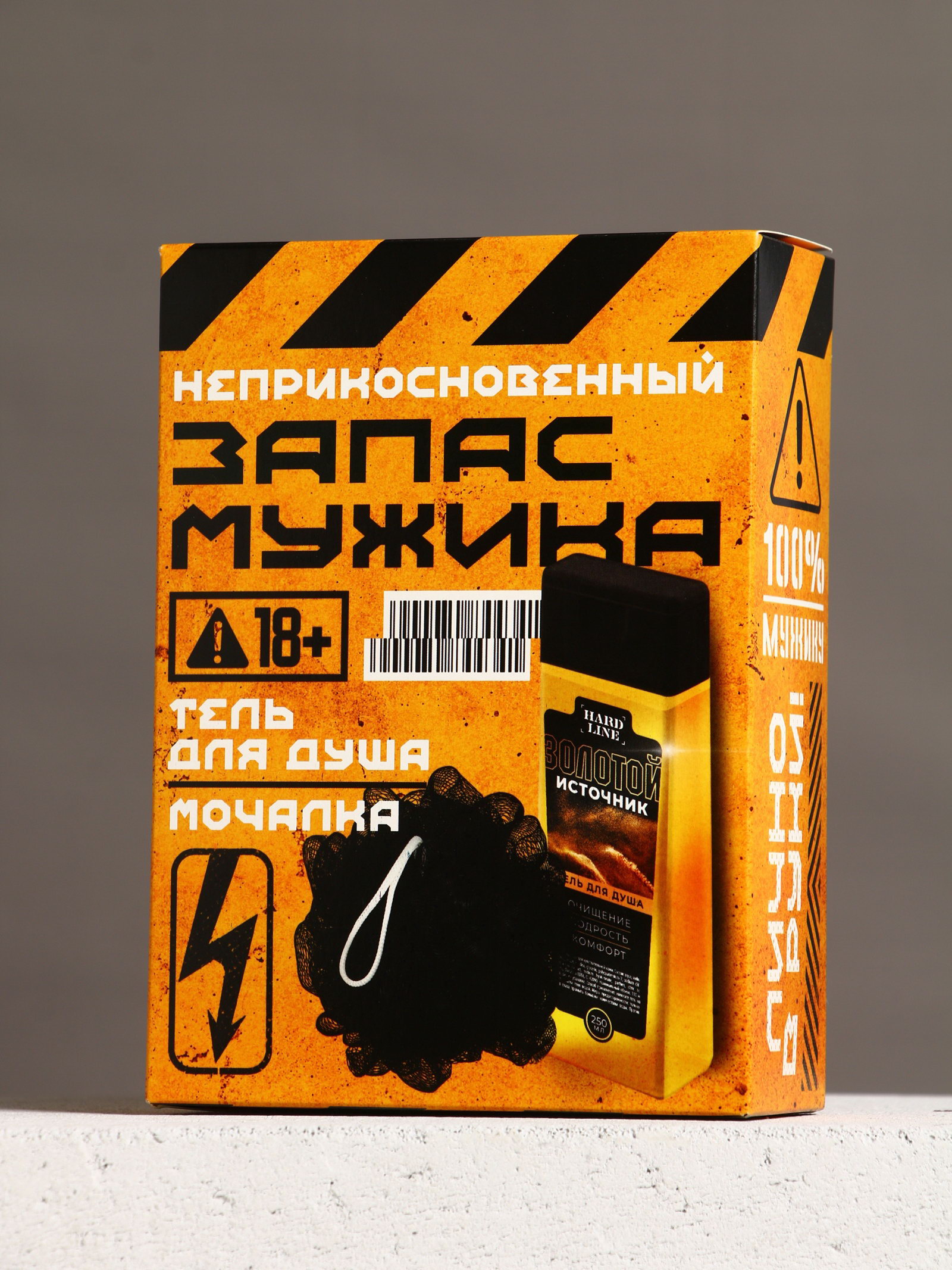 Подарочный набор косметики "Запас мужика", гель для душа 250 мл и мочалка, HARD LINE, 250 мл., Чистое счастье, Россия